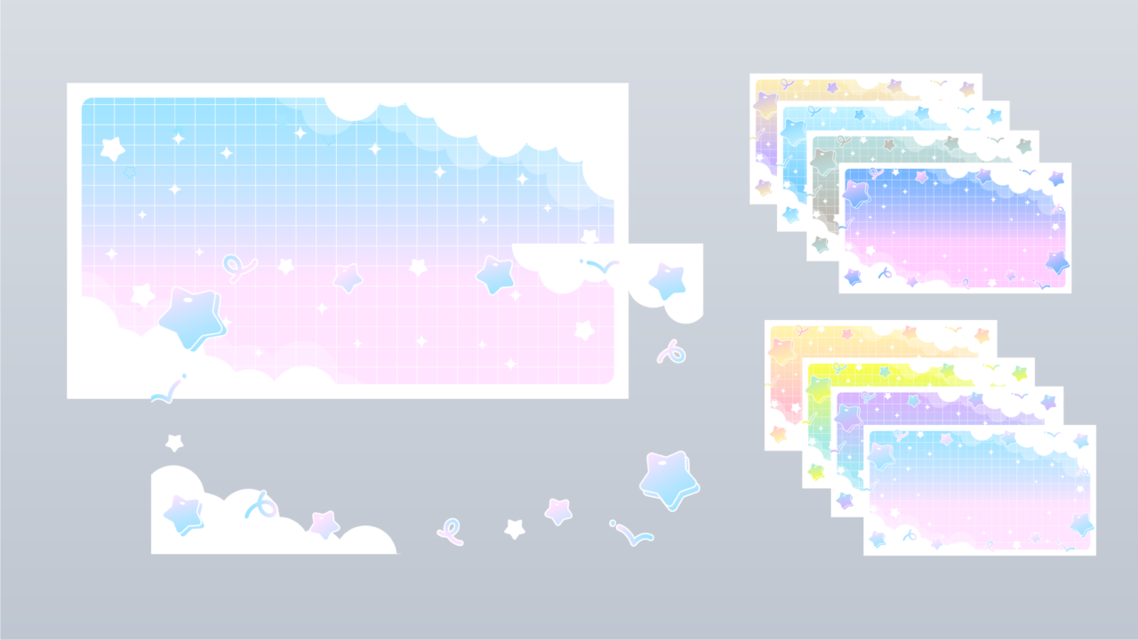 星と雲のゆめかわ背景(8種/フレーム)
