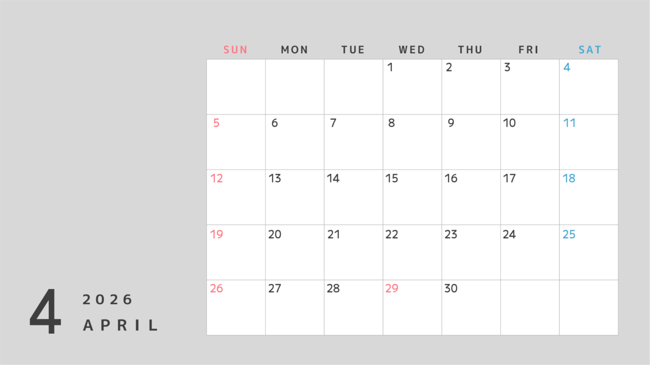 2026年のカレンダー素材(4月〜27年3月)