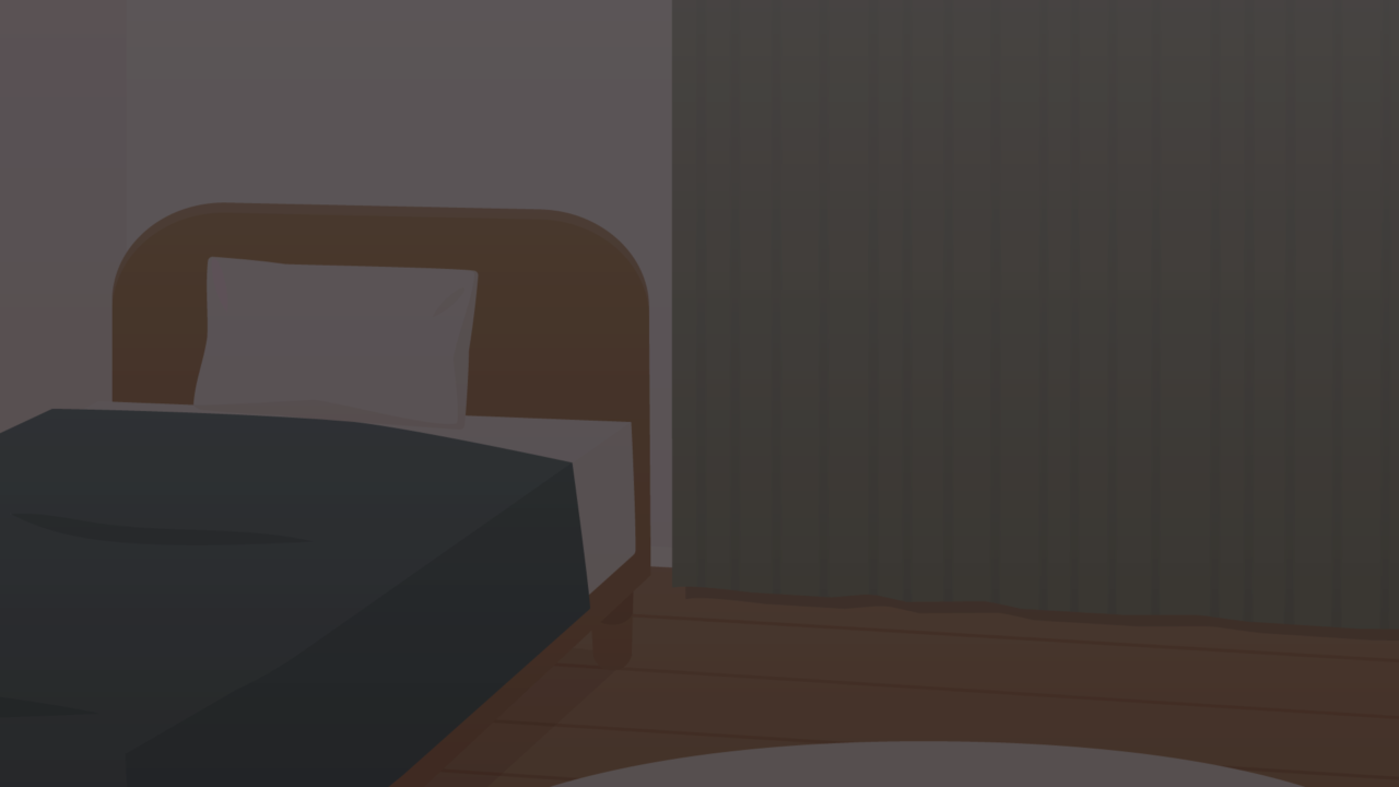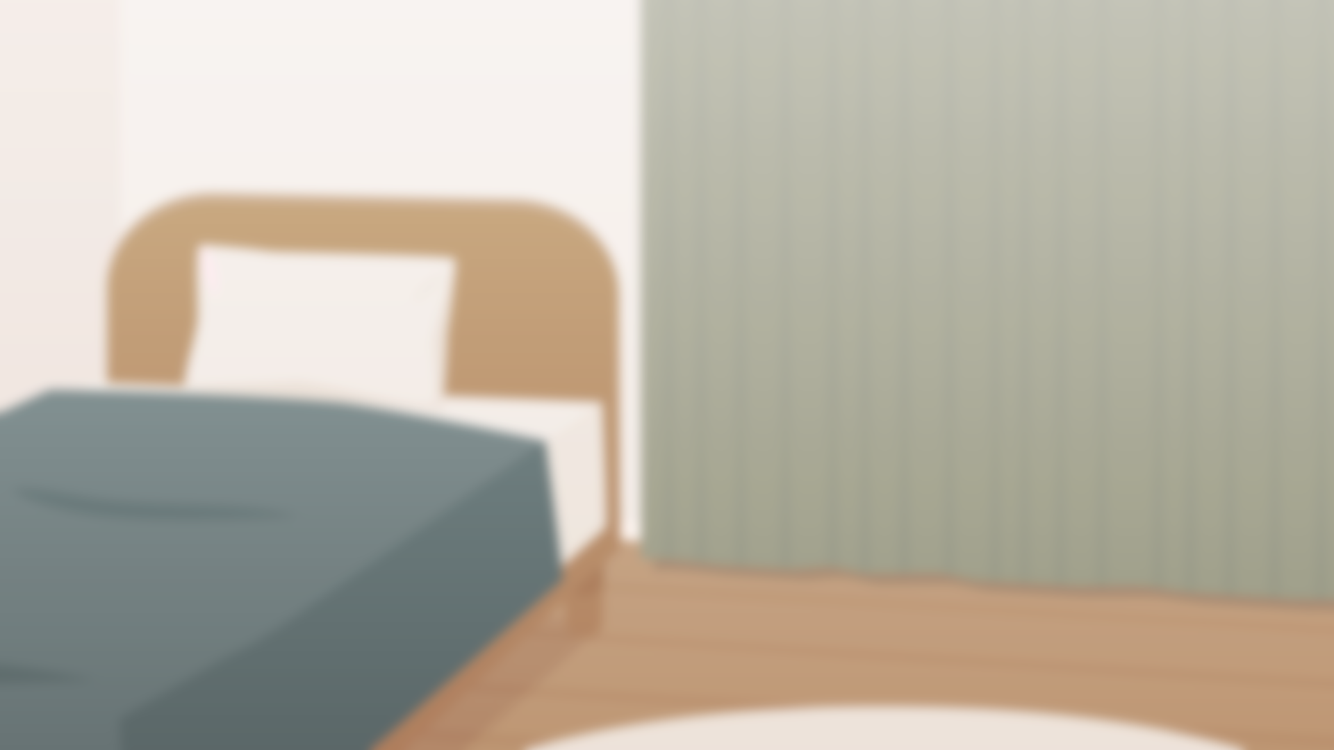 シンプル、ナチュラルなベッドとカーテンのある部屋の背景素材です。