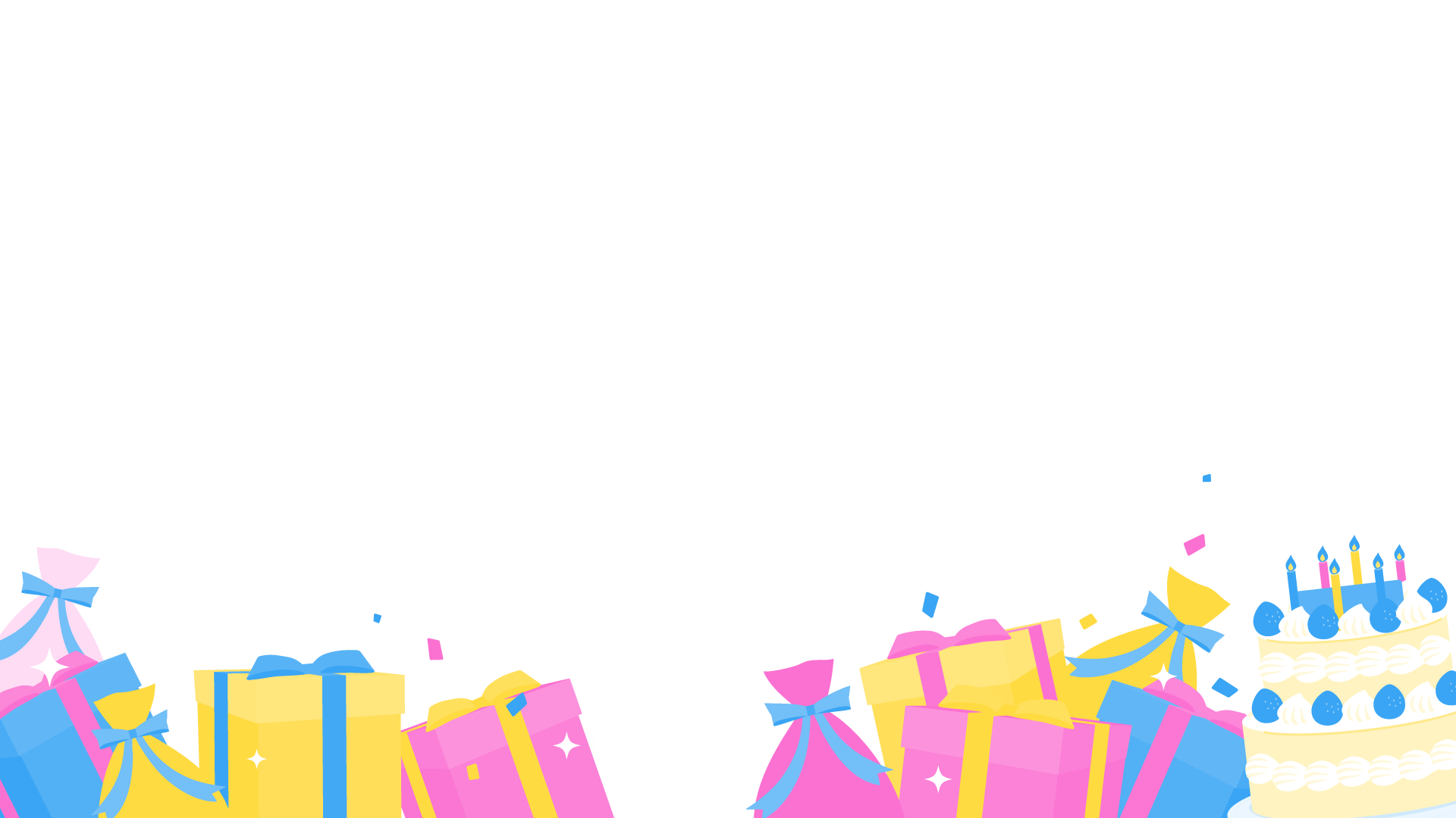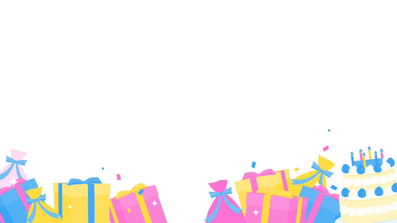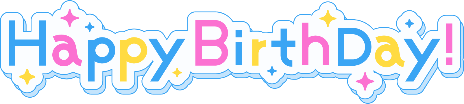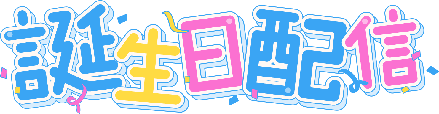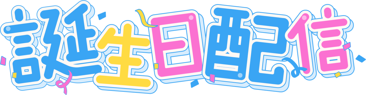フレーム、背景、「誕生日配信」「ハッピーバースデー」の文字素材のセット。単体でも使えます。