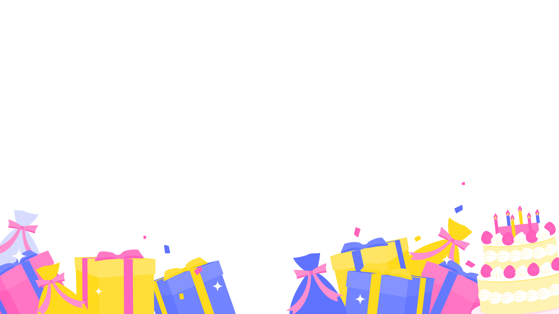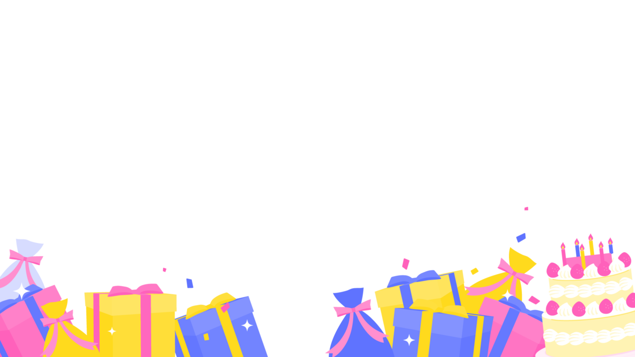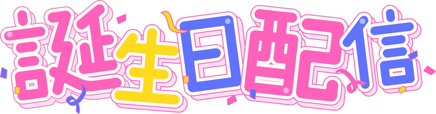 フレーム、背景、「誕生日配信」「ハッピーバースデー」の文字素材のセット。単体でも使えます。