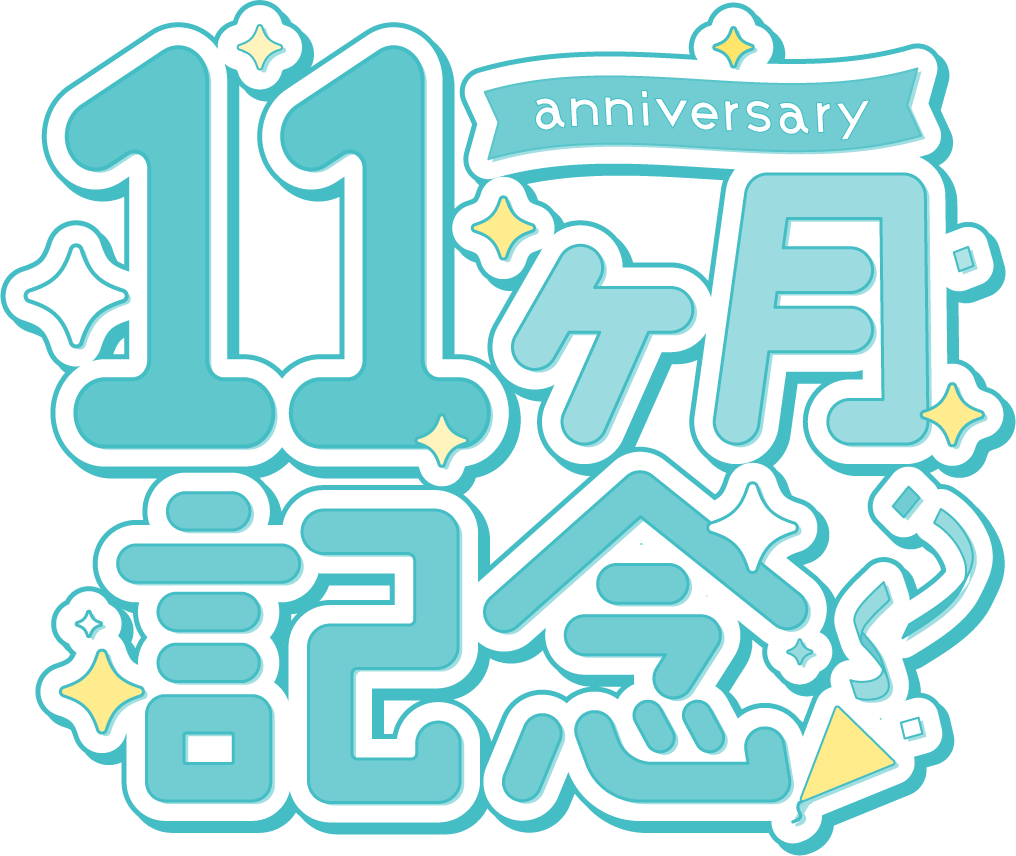 1〜11ヶ月記念のサムネイルに使える、文字と背景のテンプレート素材です。