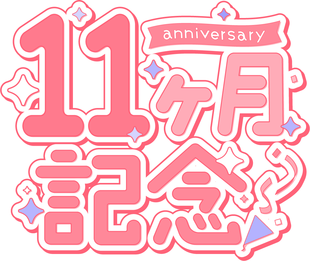 1〜11ヶ月記念のサムネイルに使える、文字と背景のテンプレート素材です。
