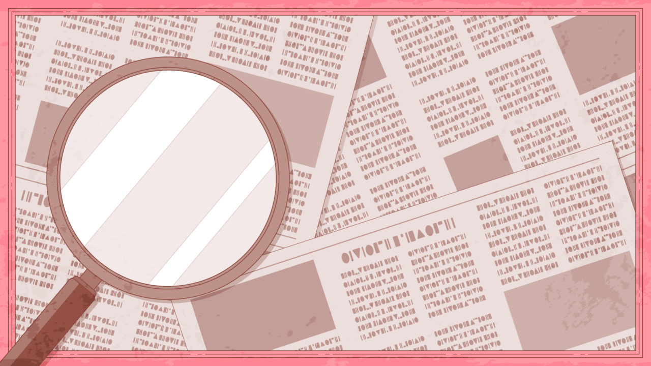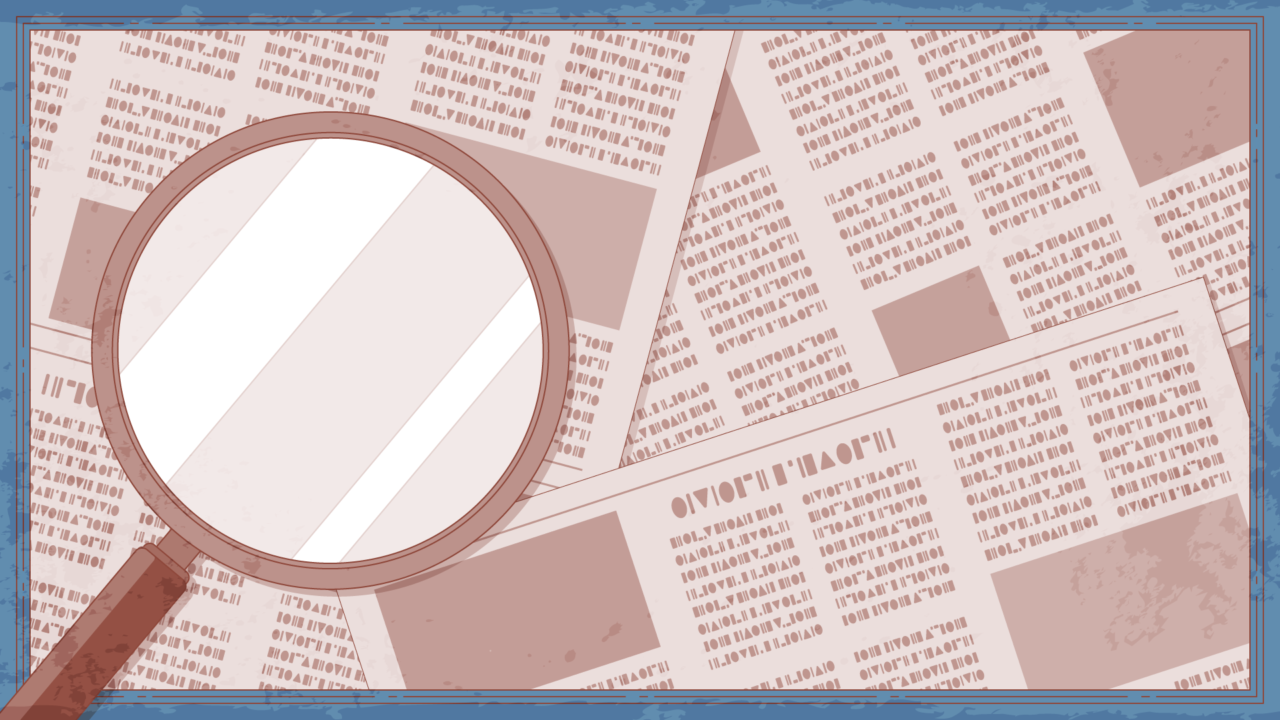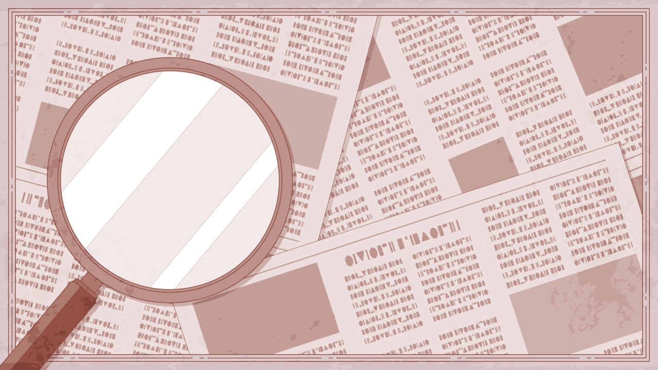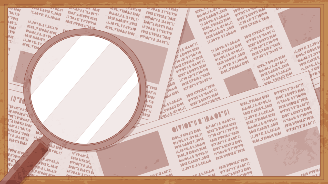 新聞紙と虫眼鏡、ルーペのイラスト背景素材です。