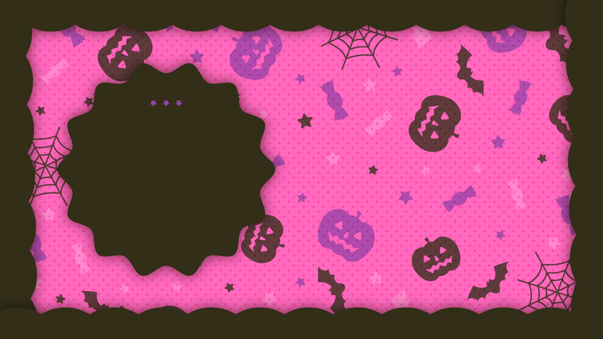 ハロウィンなかわいい背景デザイン素材です。サムネイルにそのまま使いやすい、中央が空いたデザイン。文字やイラストを入れてご使用いただけます。秋・ハロウィンの背...