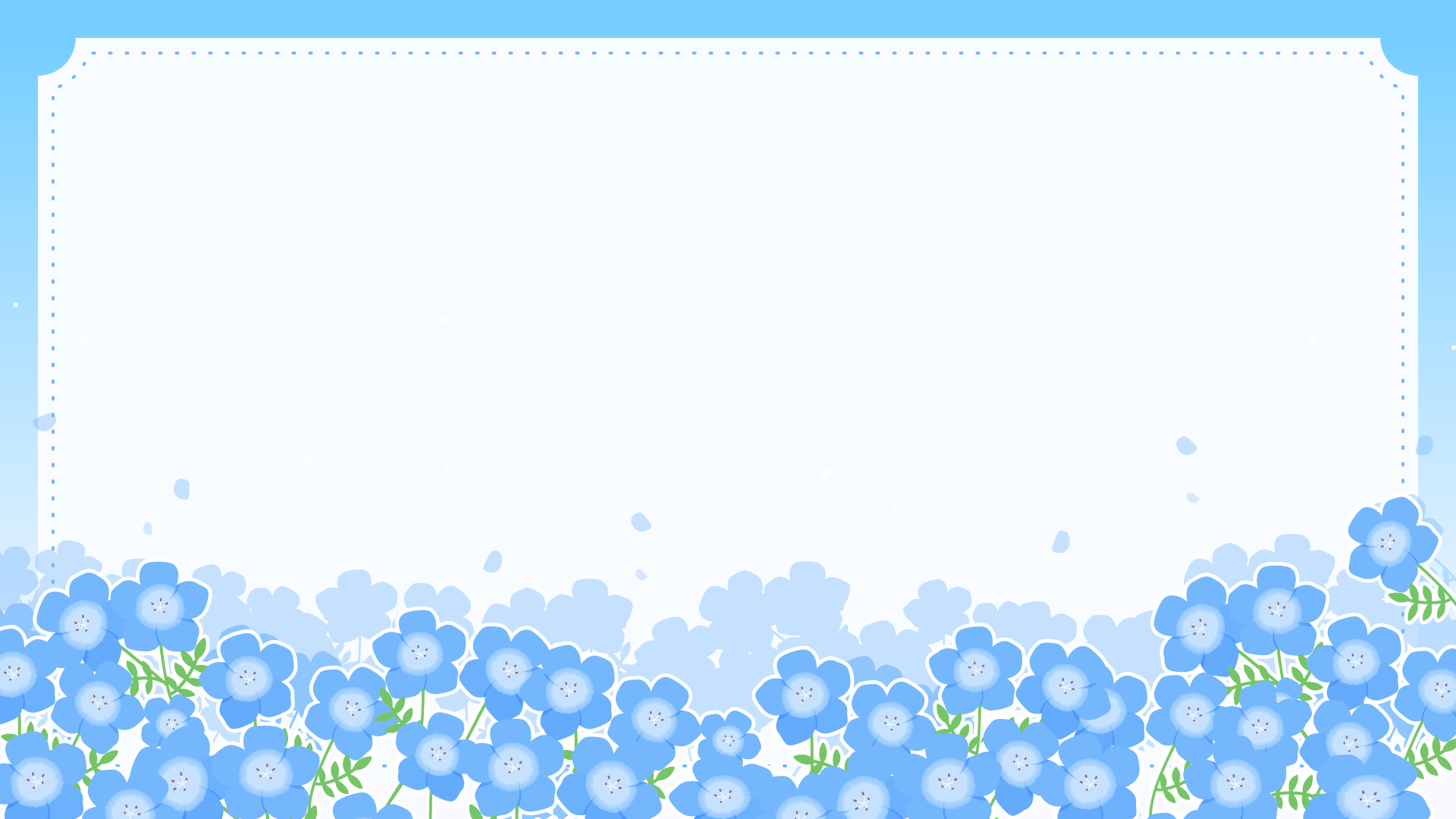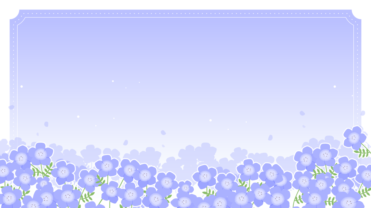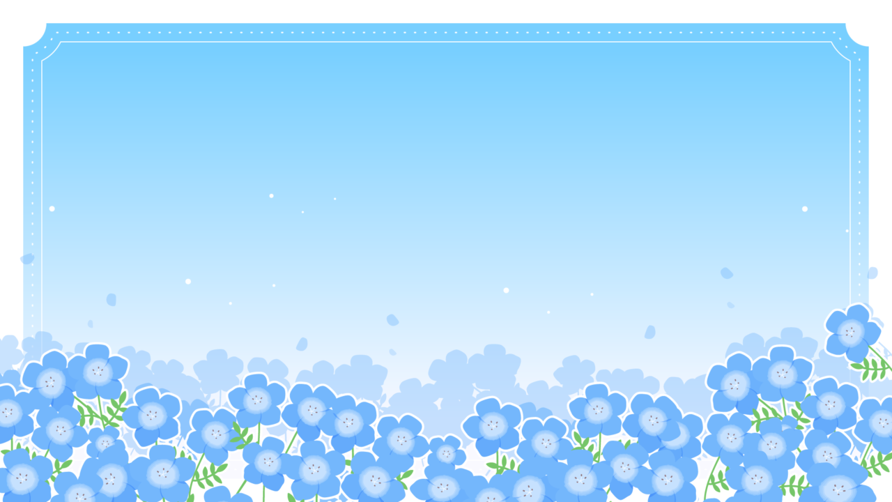 ネモフィラの花の咲く背景イラスト素材です。ネモフィラ畑と空。