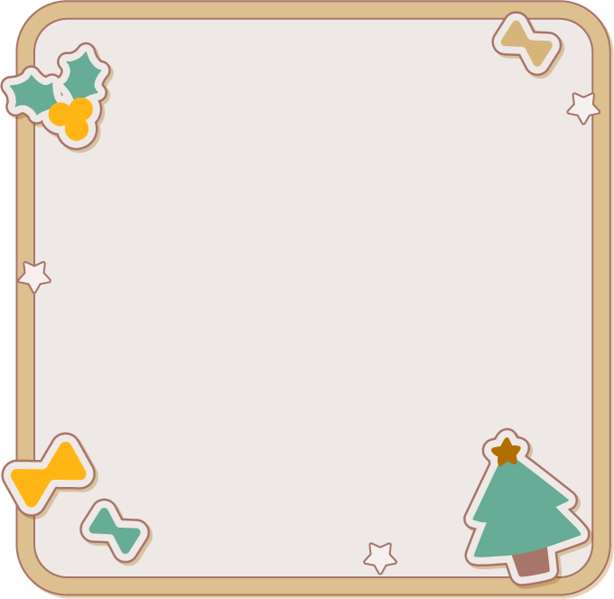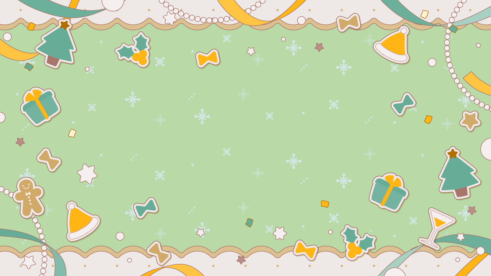 クリスマスツリー、プレゼント、サンタ帽子、リボン、ジンジャークッキーなどが散りばめられています。
