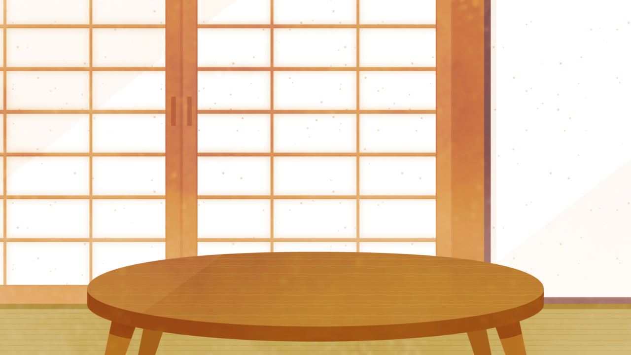 和室にちゃぶ台、みかんなどが置かれた背景イラスト素材です。