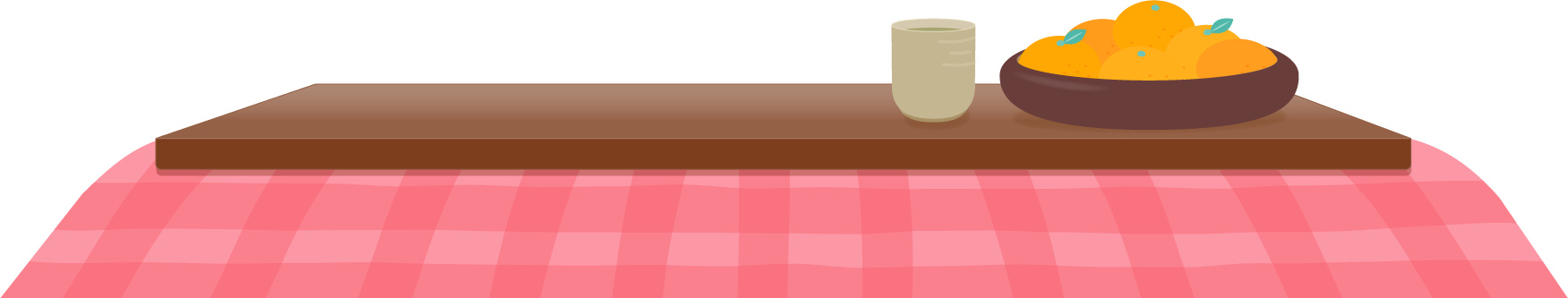 ぽかぽか暖かそうなこたつのイラスト素材です。