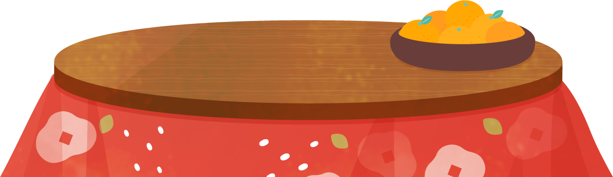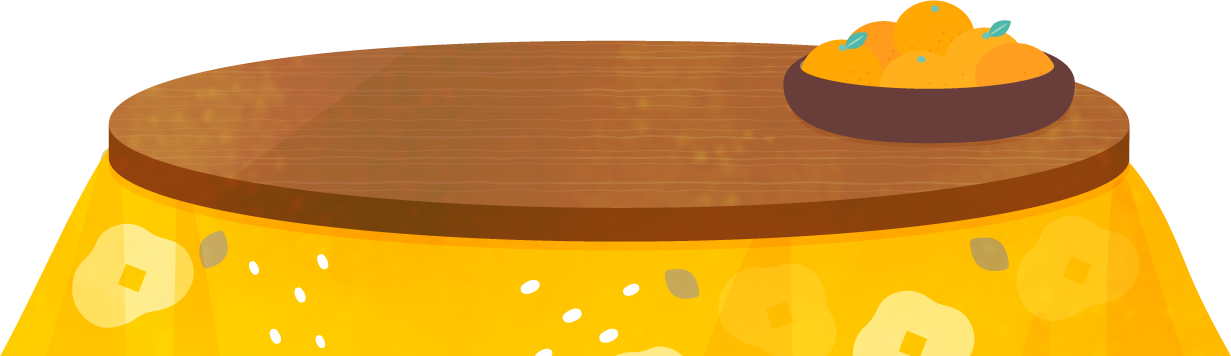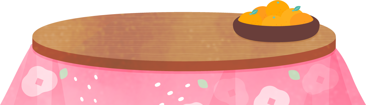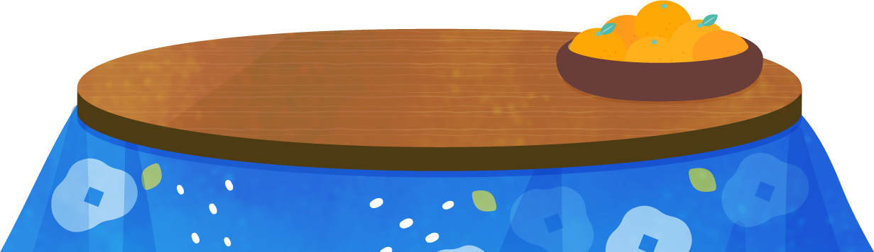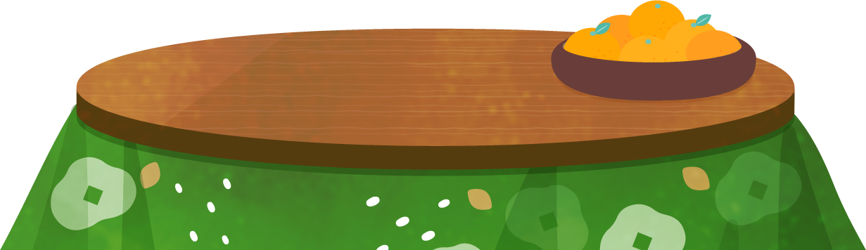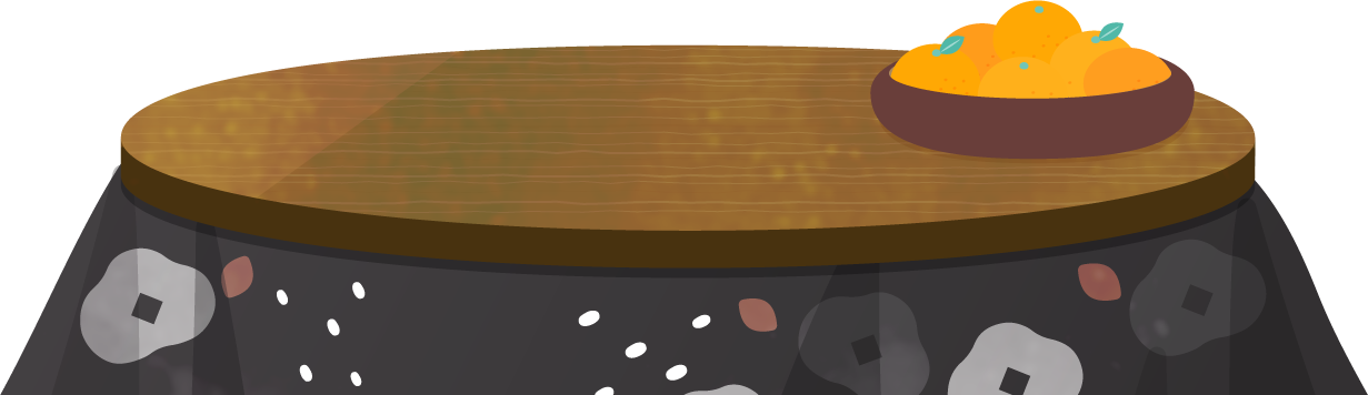 丸いコタツテーブルにみかんが置かれたこたつイラスト素材です。