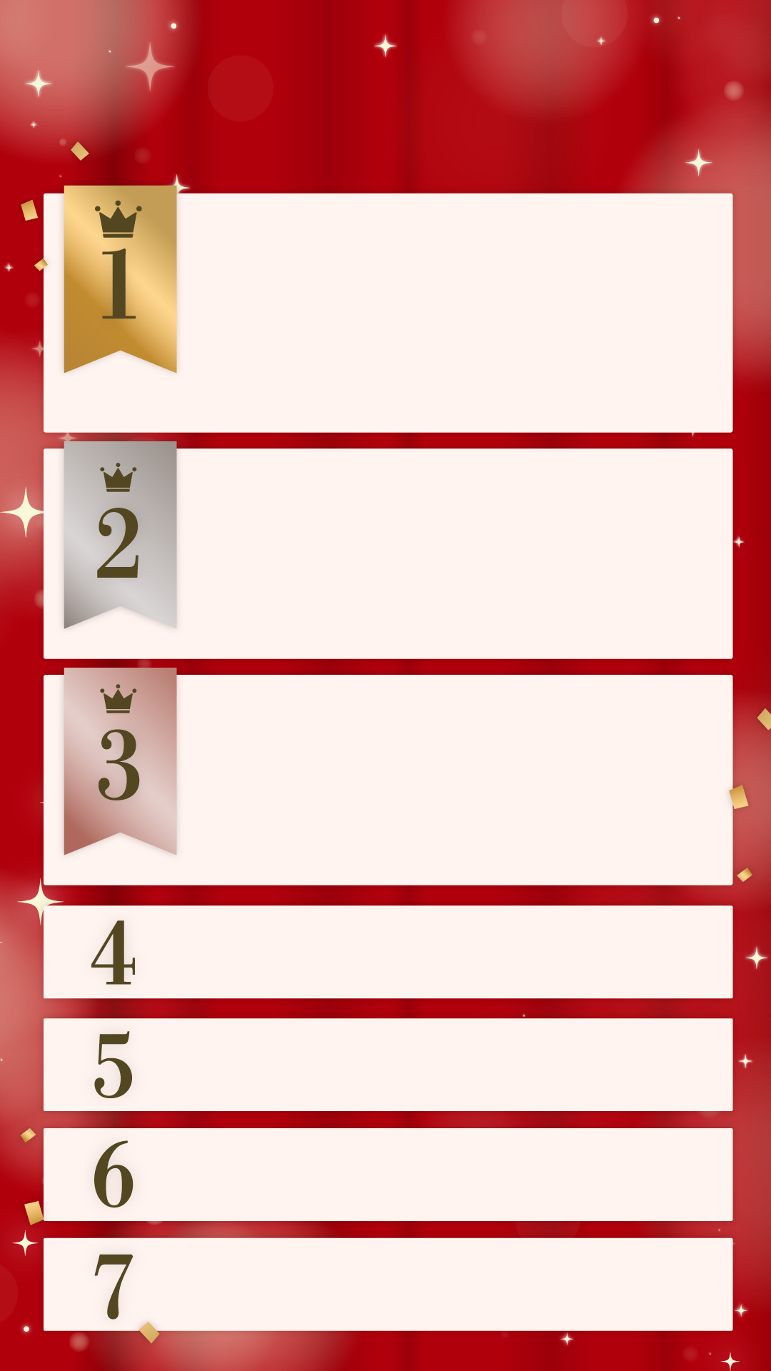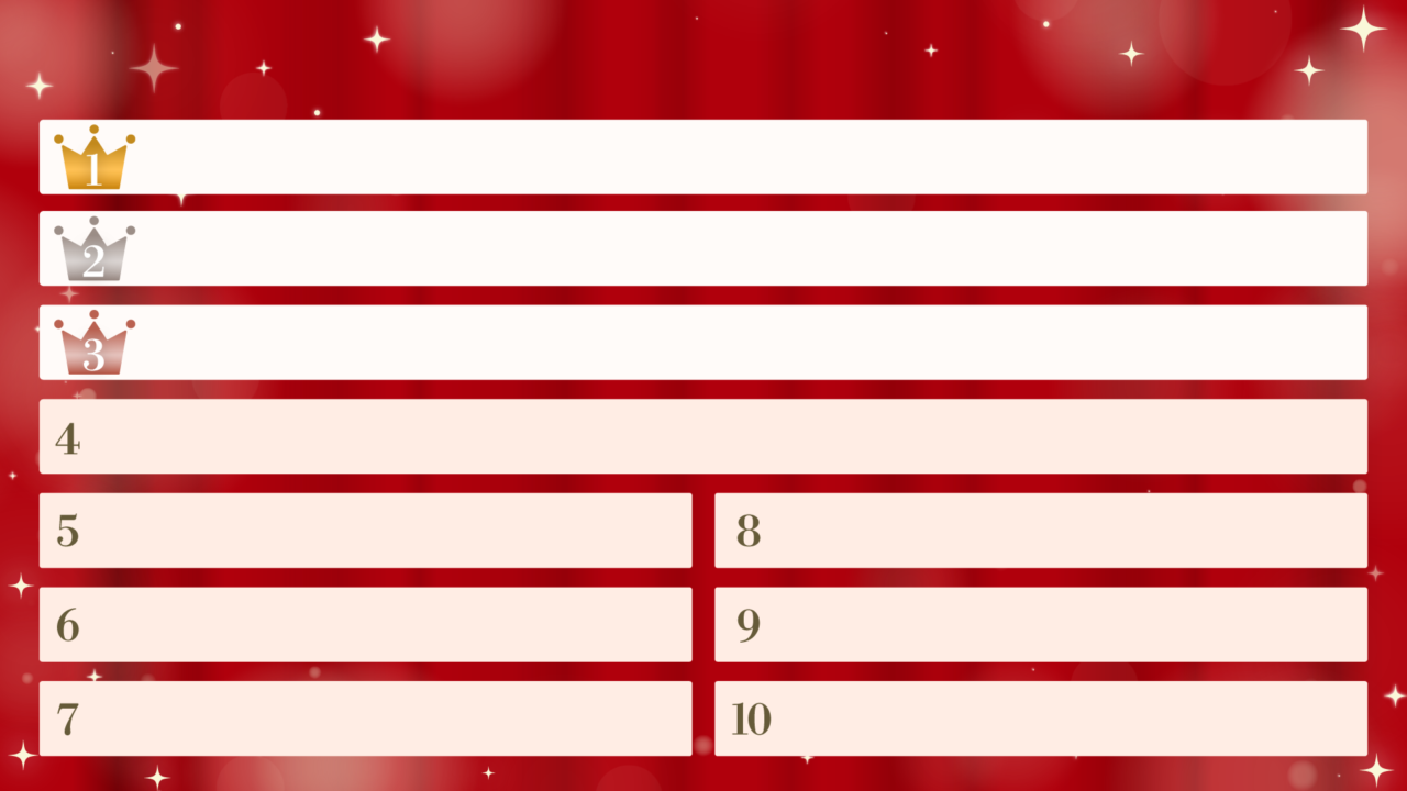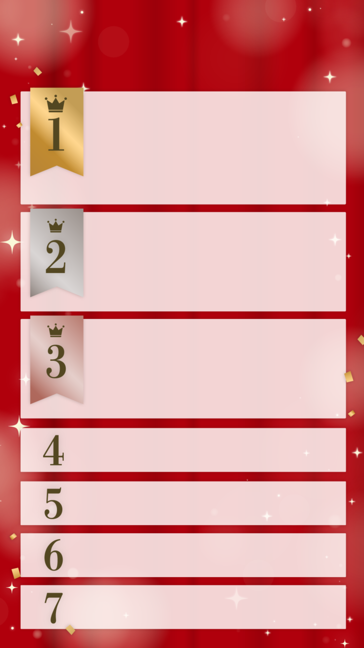 ベスト3位まで、7位、10位までなど色々バリエーション。9:16の縦バージョンも。