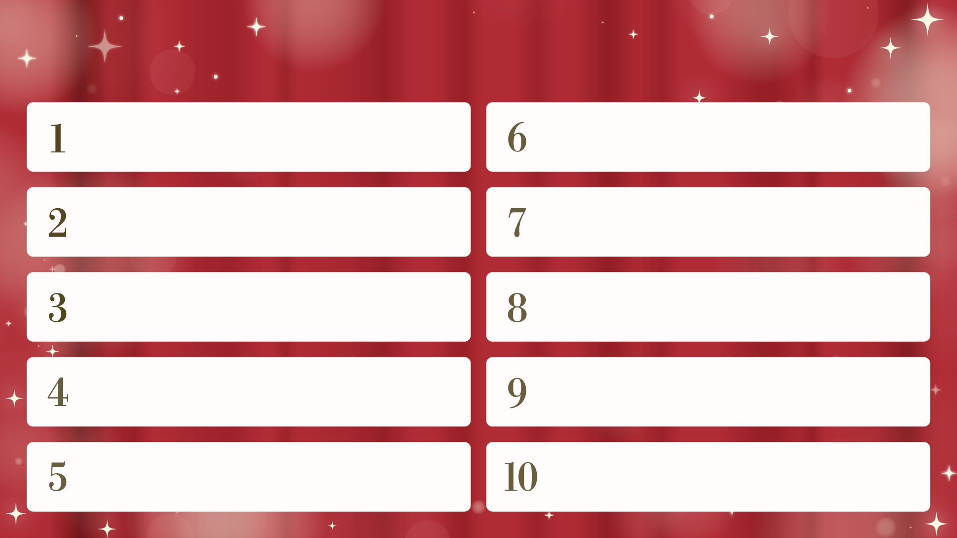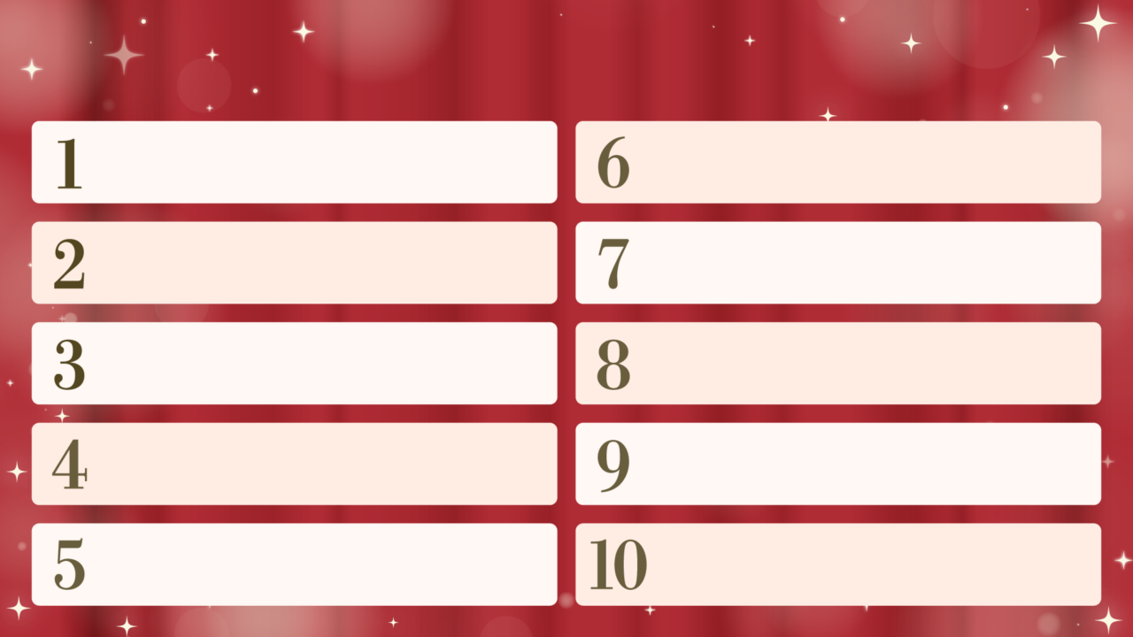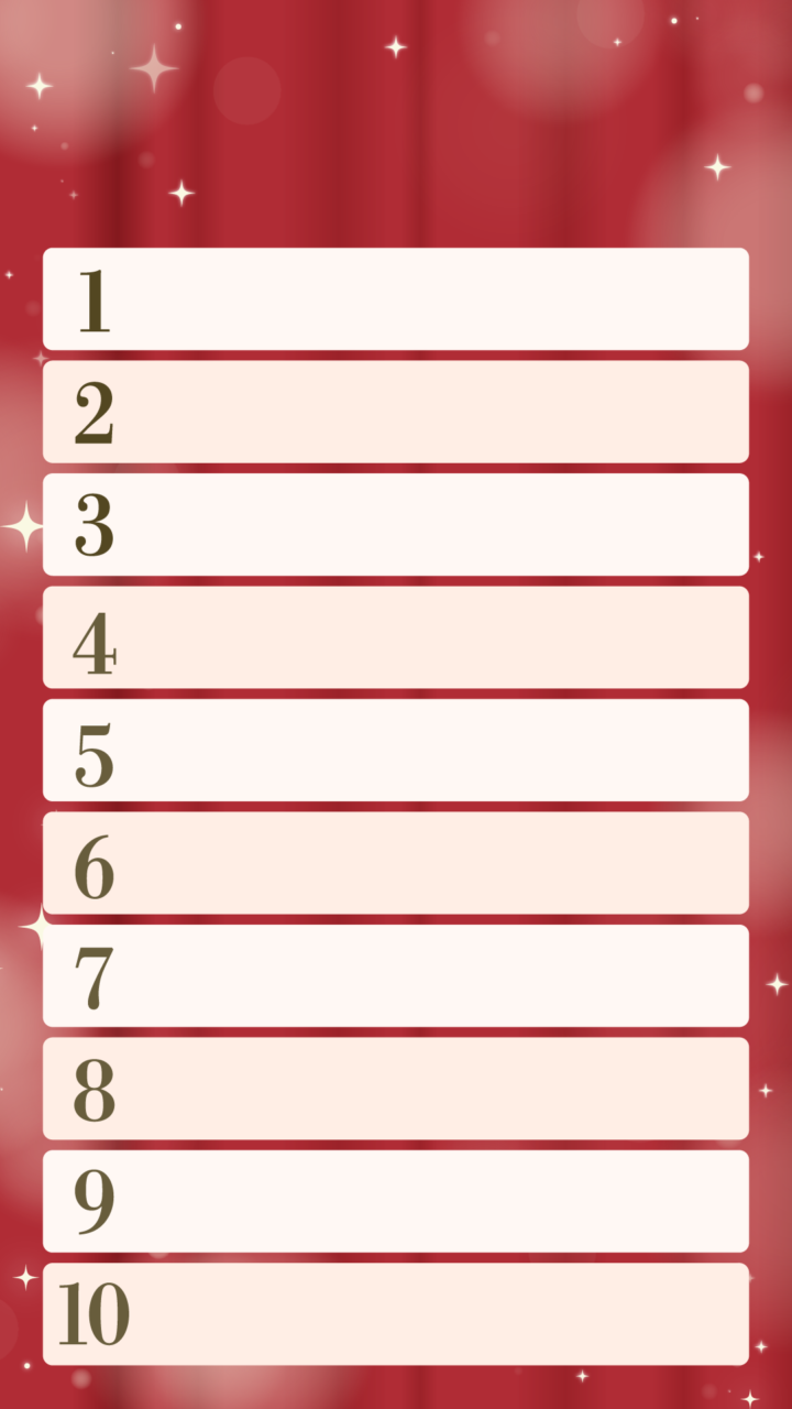 1年間の振り返りや買って良かったもの、好きなもの、自分のベスト10、アンケート結果の発表など企画系に便利。