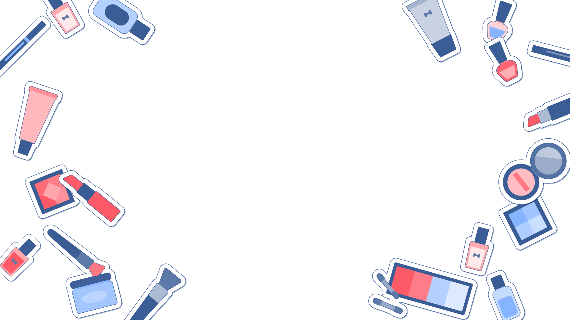 メイク道具の散らばるデザインイラスト素材です。ネイルやリップ、パレットなどいろいろ。お化粧、コスメ、メイク、お出かけ、コフレなどのテーマに。ちょっと大人っぽ...
