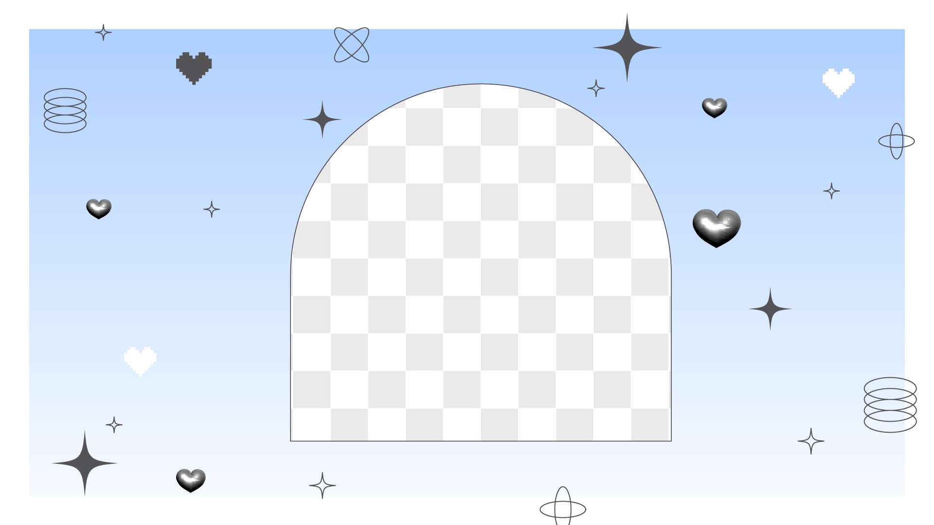 中央の窓のところにイラストを合わせても、ずらして斜めにイラストや立ち絵を配置しても。