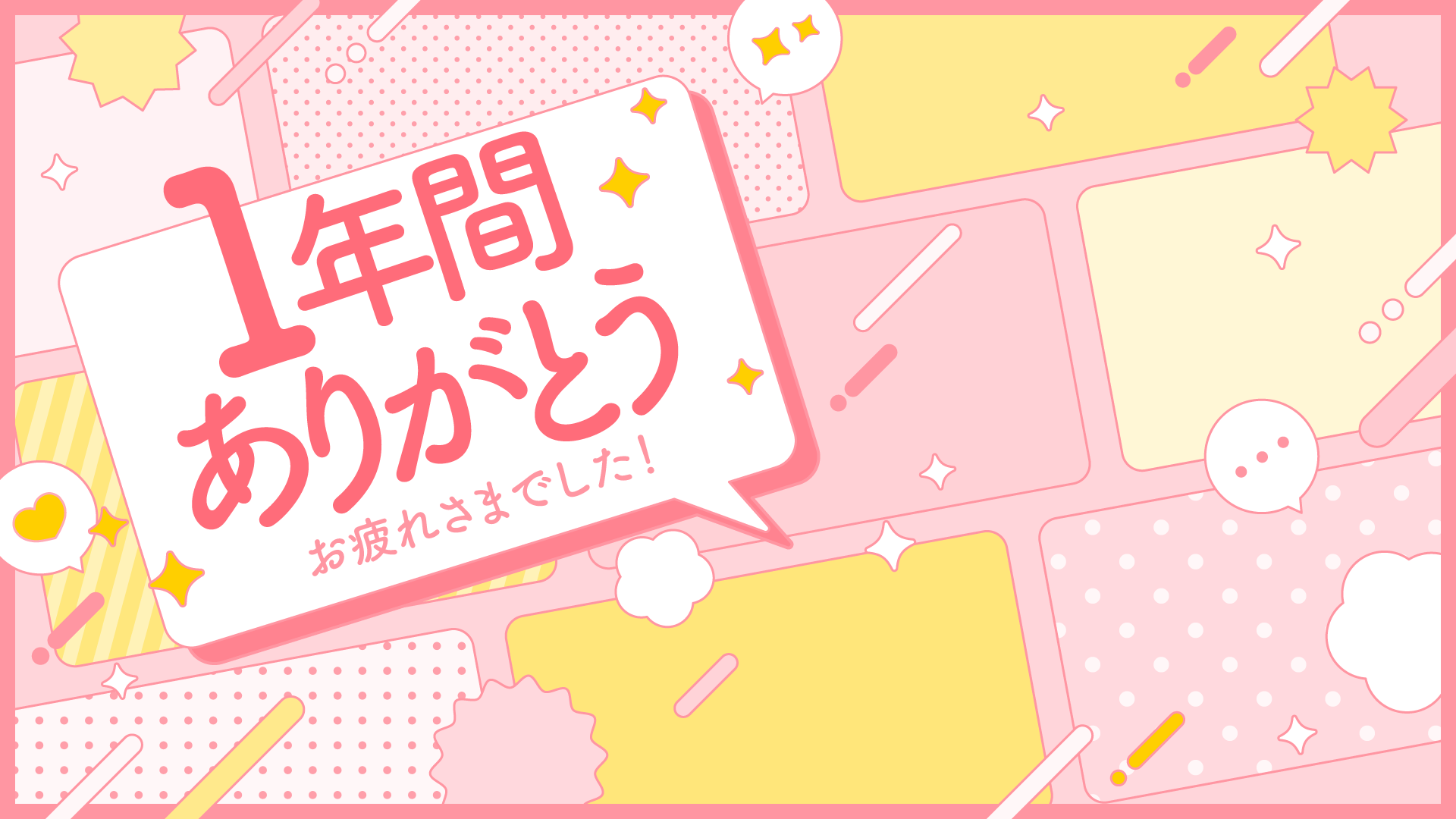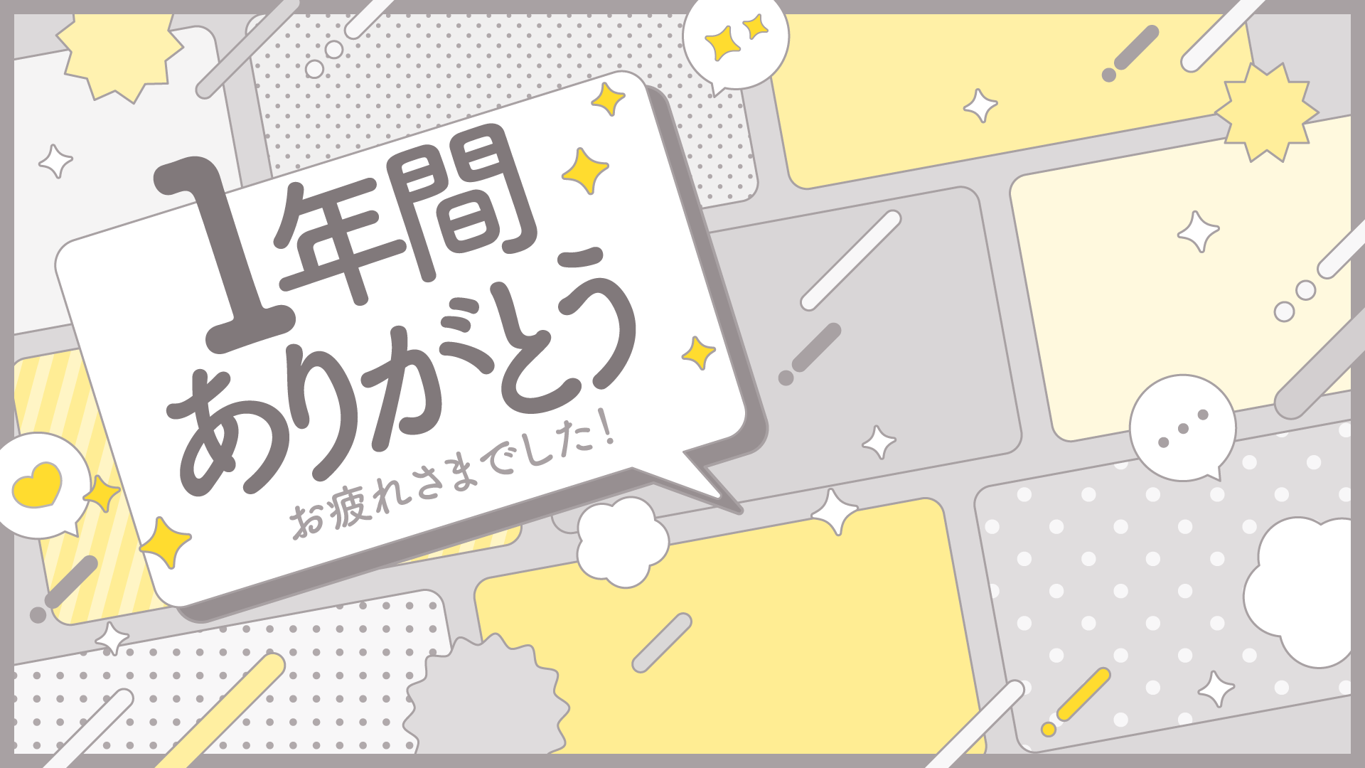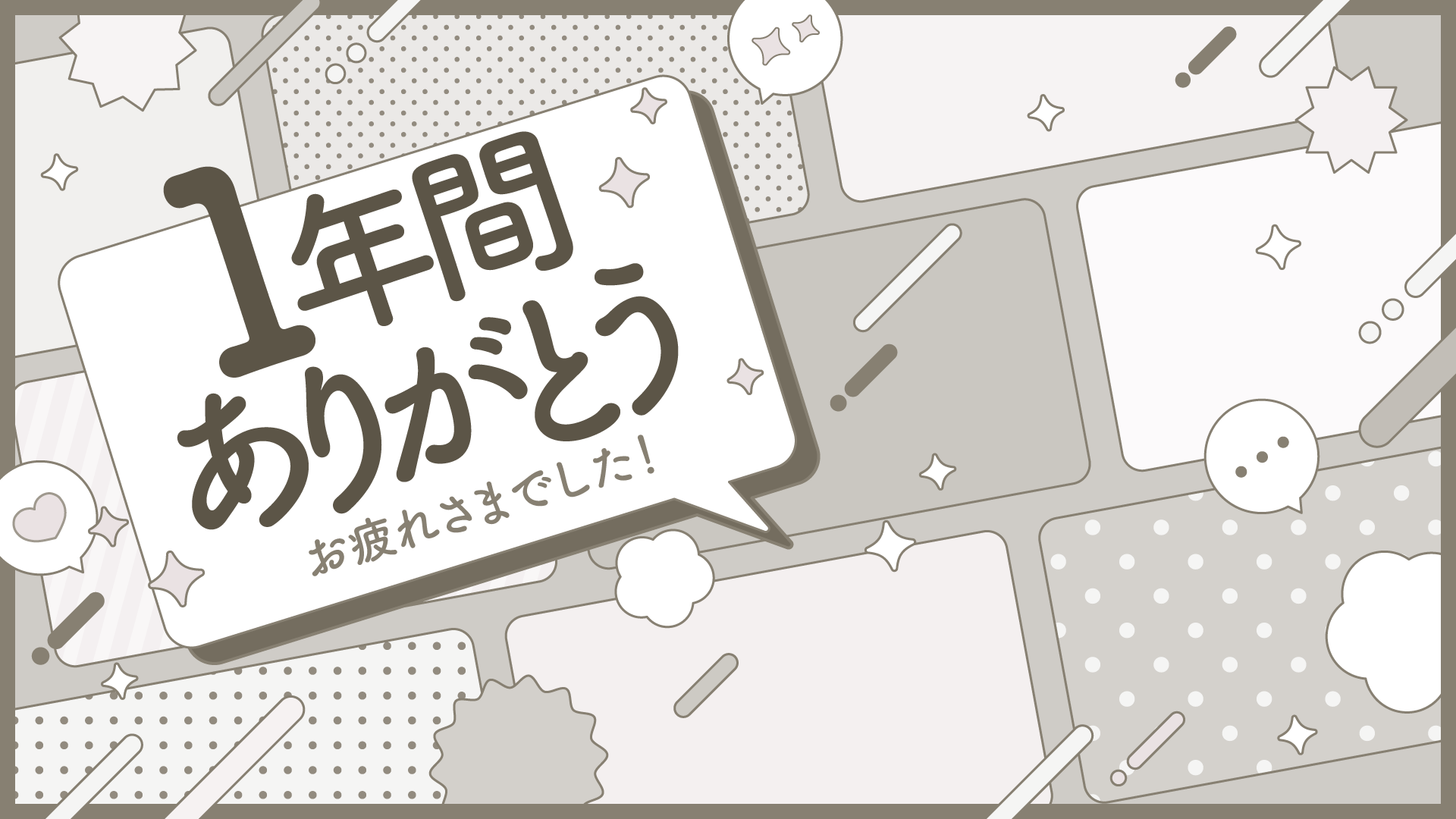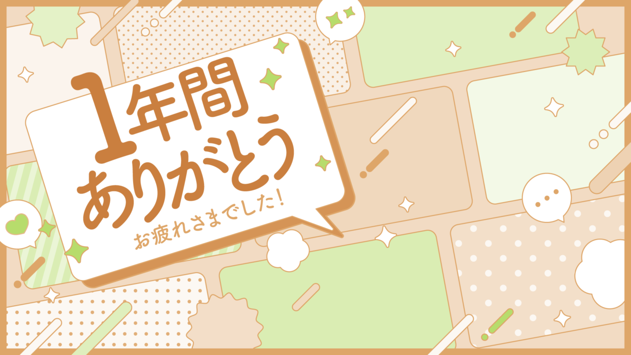 1年間ありがとうのメッセージ背景(12種) 2024 12/28 デザイン かわいい 感情 冬 アニバーサリー メッセージカード ☆ お気に入り 「1年間ありがとう」「お疲れ様でした」のメッセージが書かれた背景素材です。右側に立ち絵やイラストを入れて使えます。SNSでの感謝のほか、振り返り動画や配信のサムネイルなどにも。1年の感謝の心を伝えたい時に。 ☆ お気に入り デザイン かわいい 感情 冬 アニバーサリー メッセージカード URLをコピーしました!
