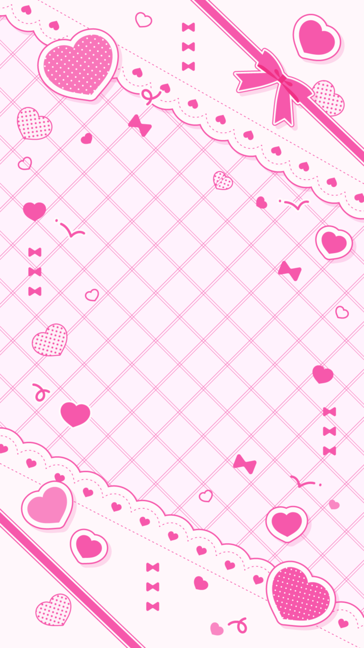 ガーリーチェックとリボンの背景-9:16(10種)