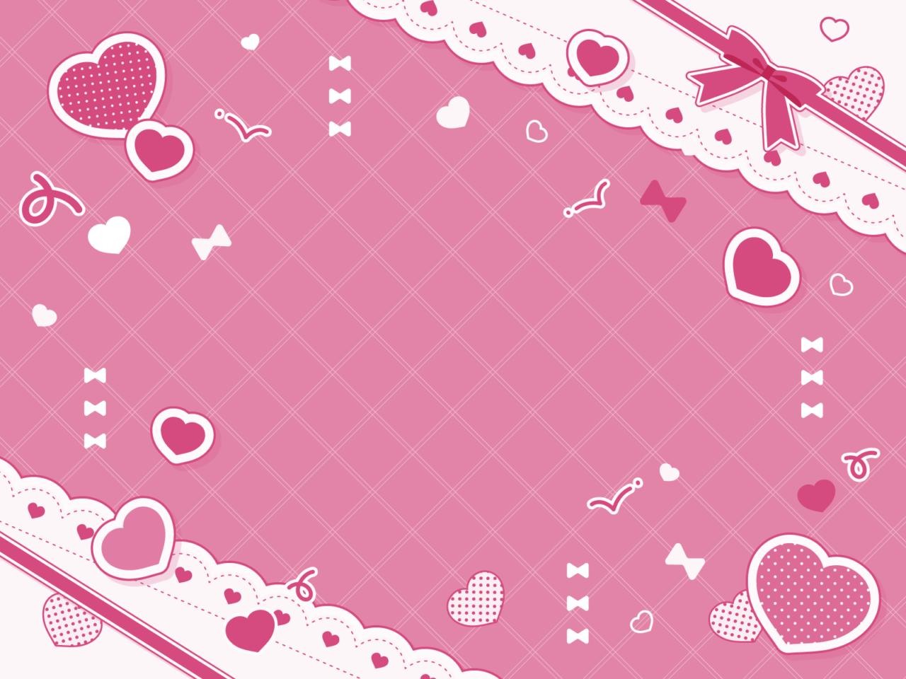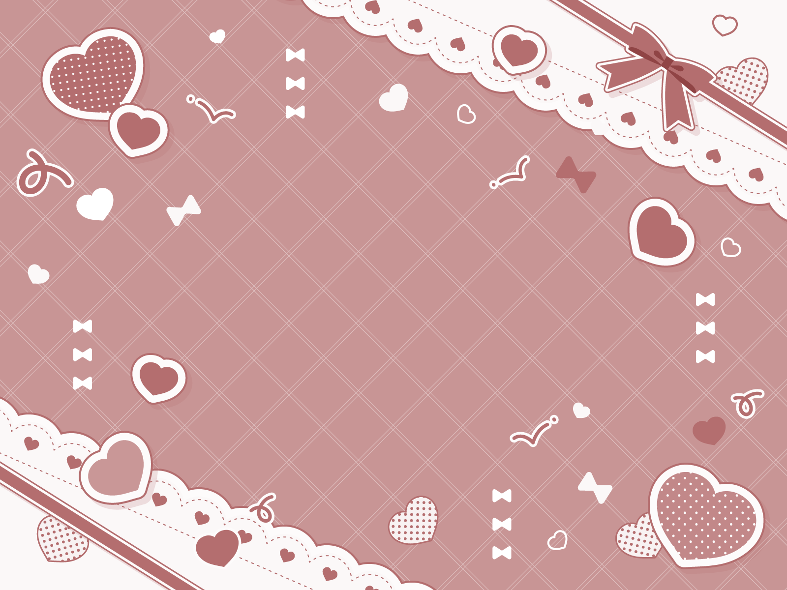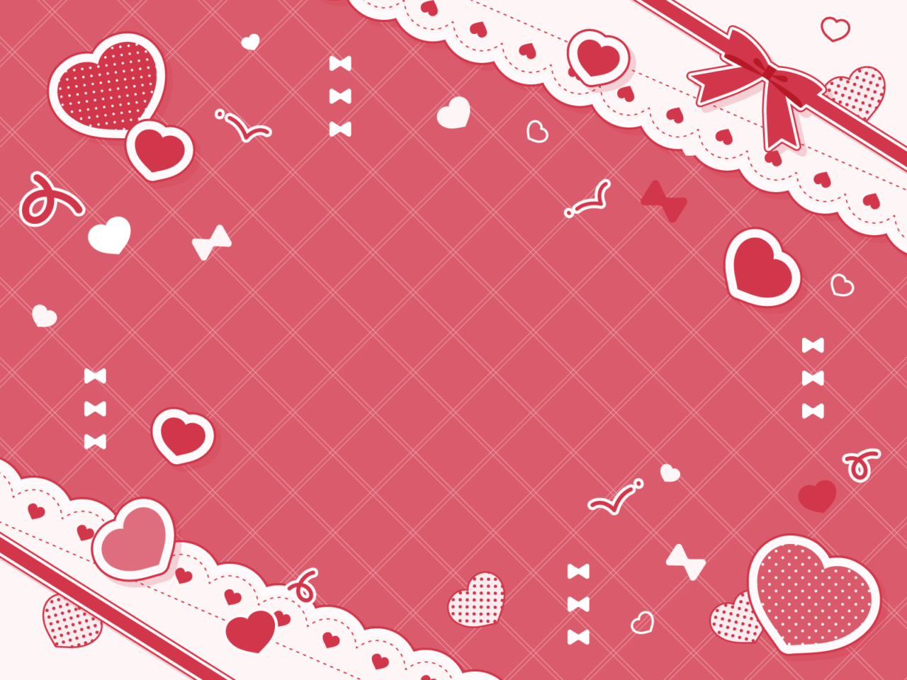 ハートとリボンとレースがかわいい背景素材です。