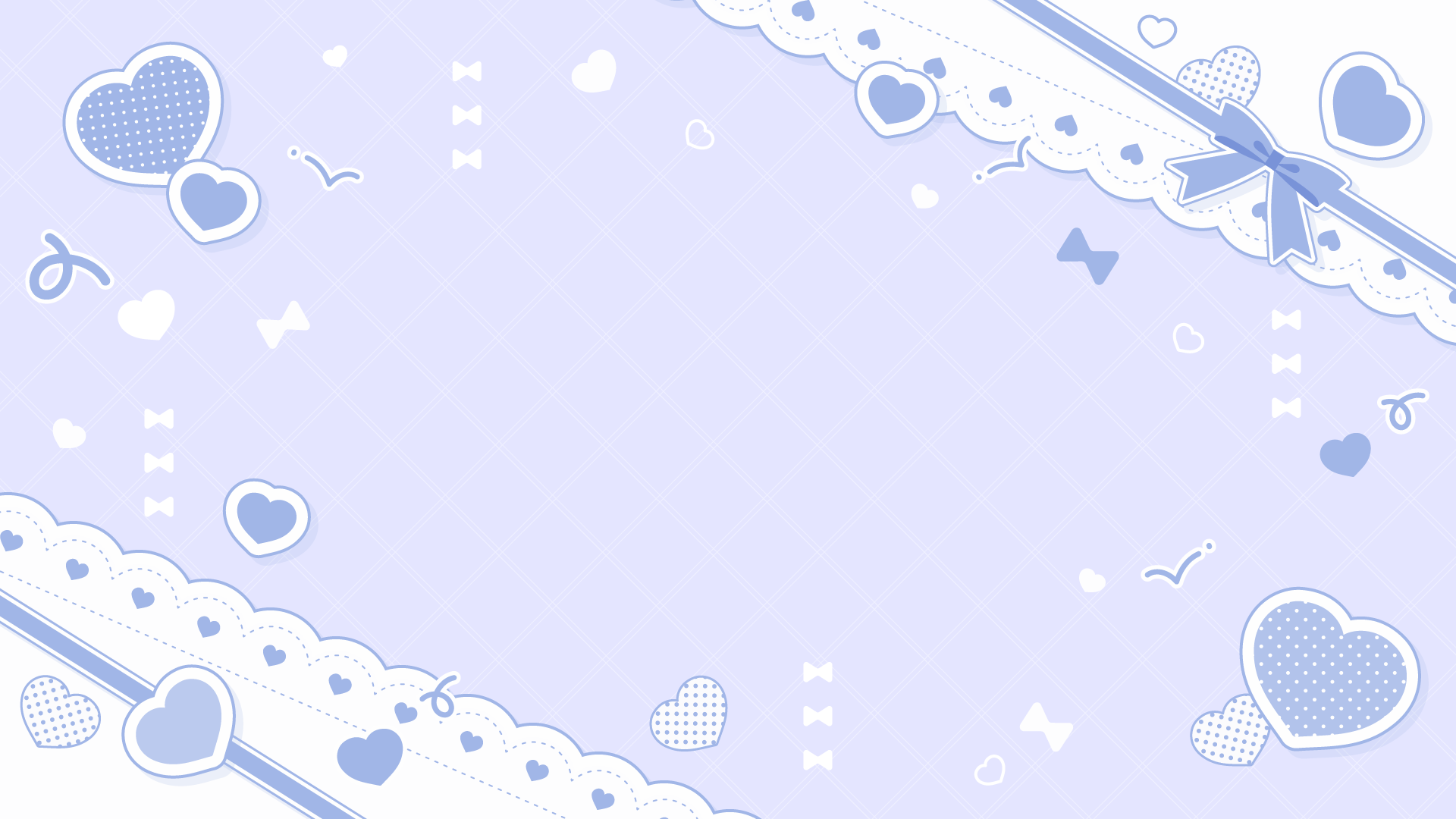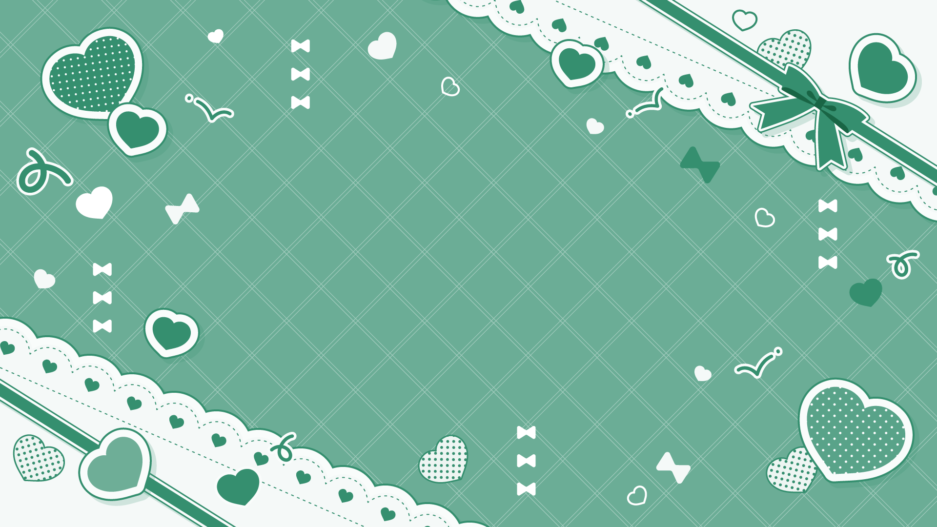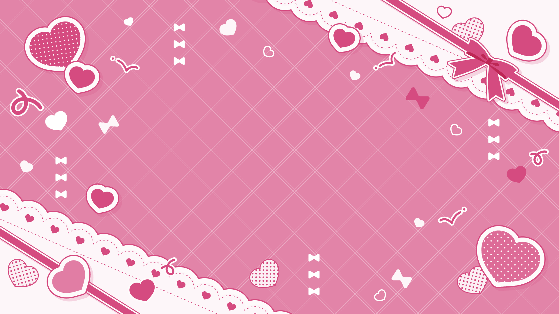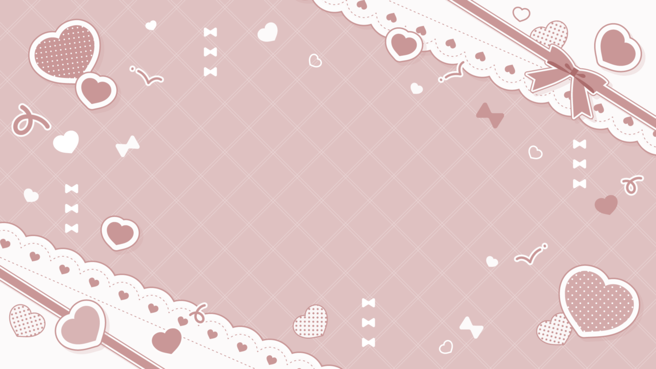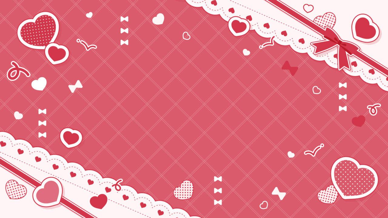 リボンとハートが散らばるかわいい背景デザイン素材です。中央に立ち絵やイラスト、文字を置いて使えます。イメージカラーやテーマに合わせてお好きな色をどうぞ。推し...