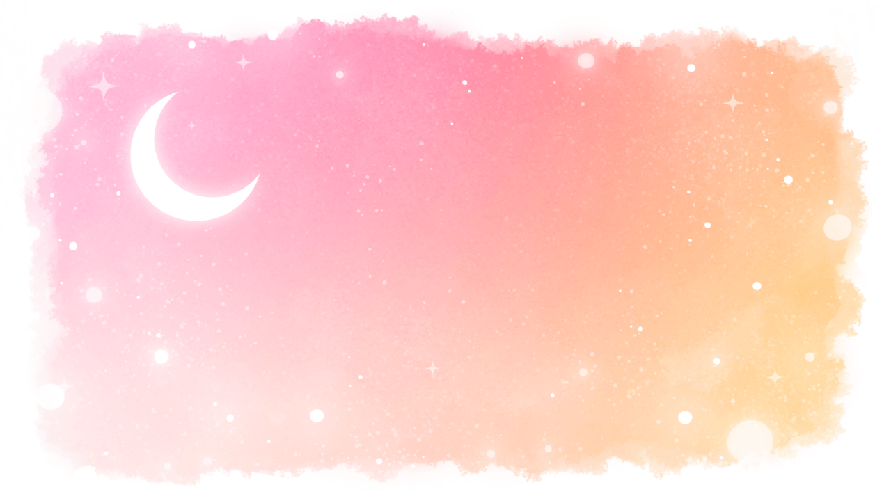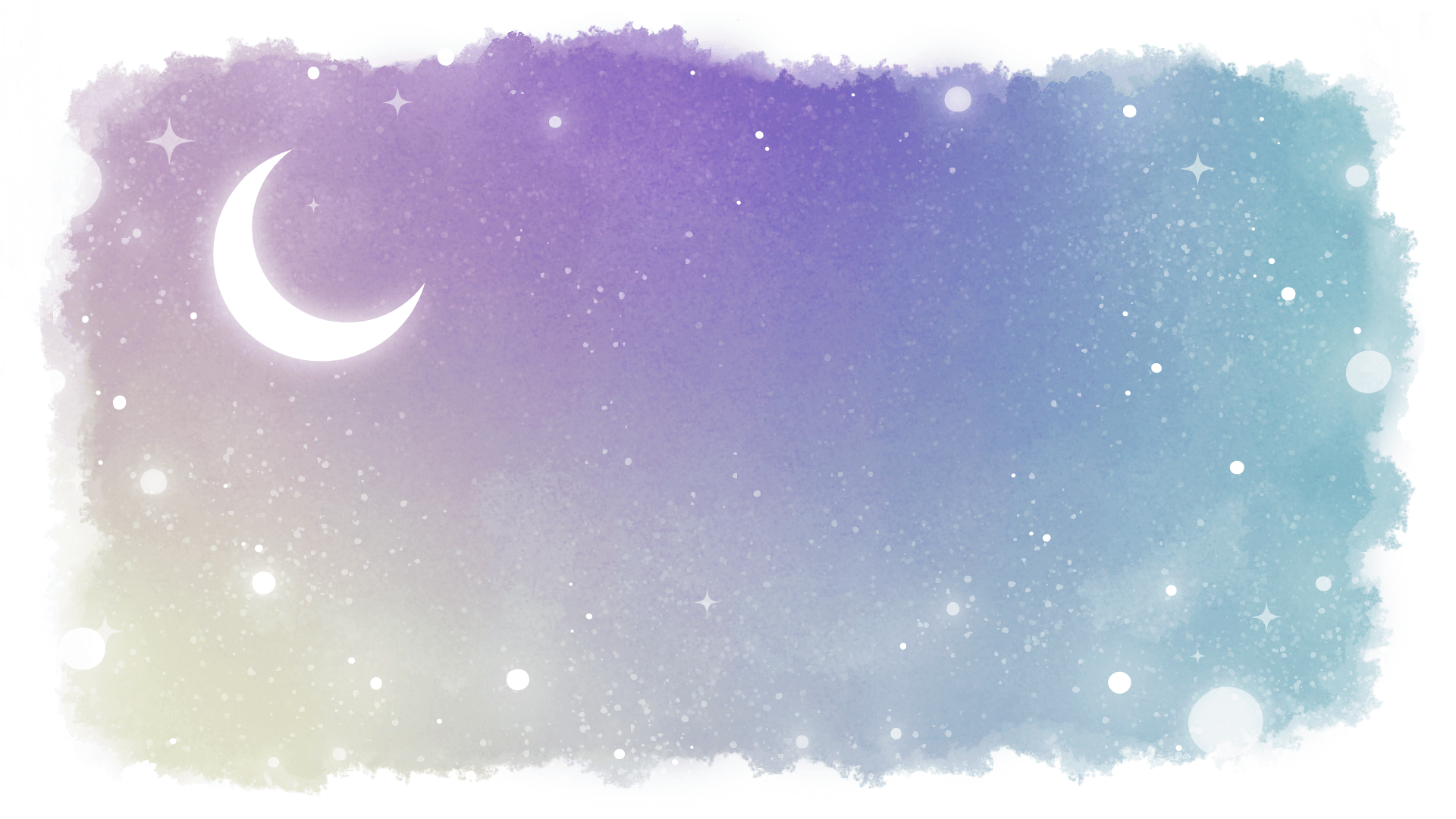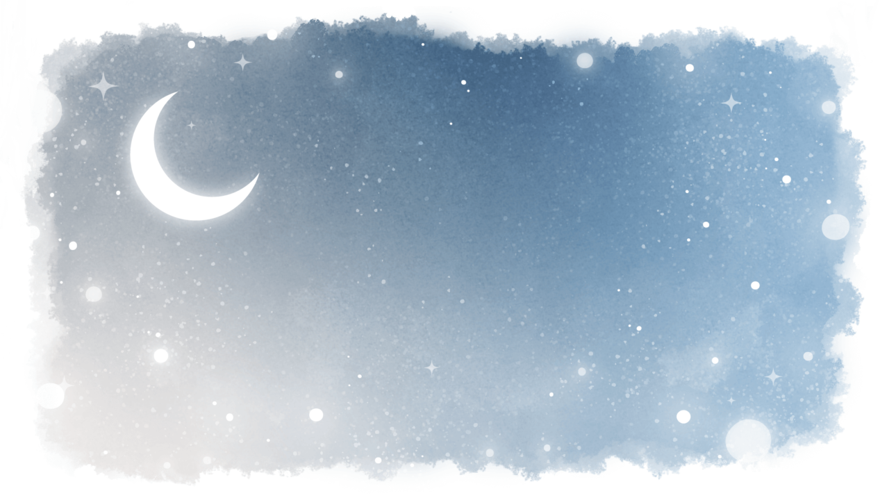 童話、ファンタジー、物語な雰囲気の月が浮かぶ夜空の背景素材です。水彩風フレーム。