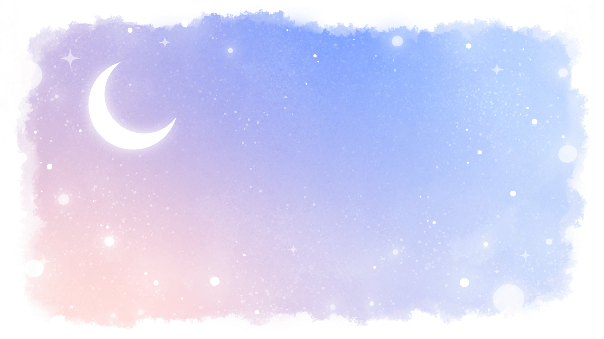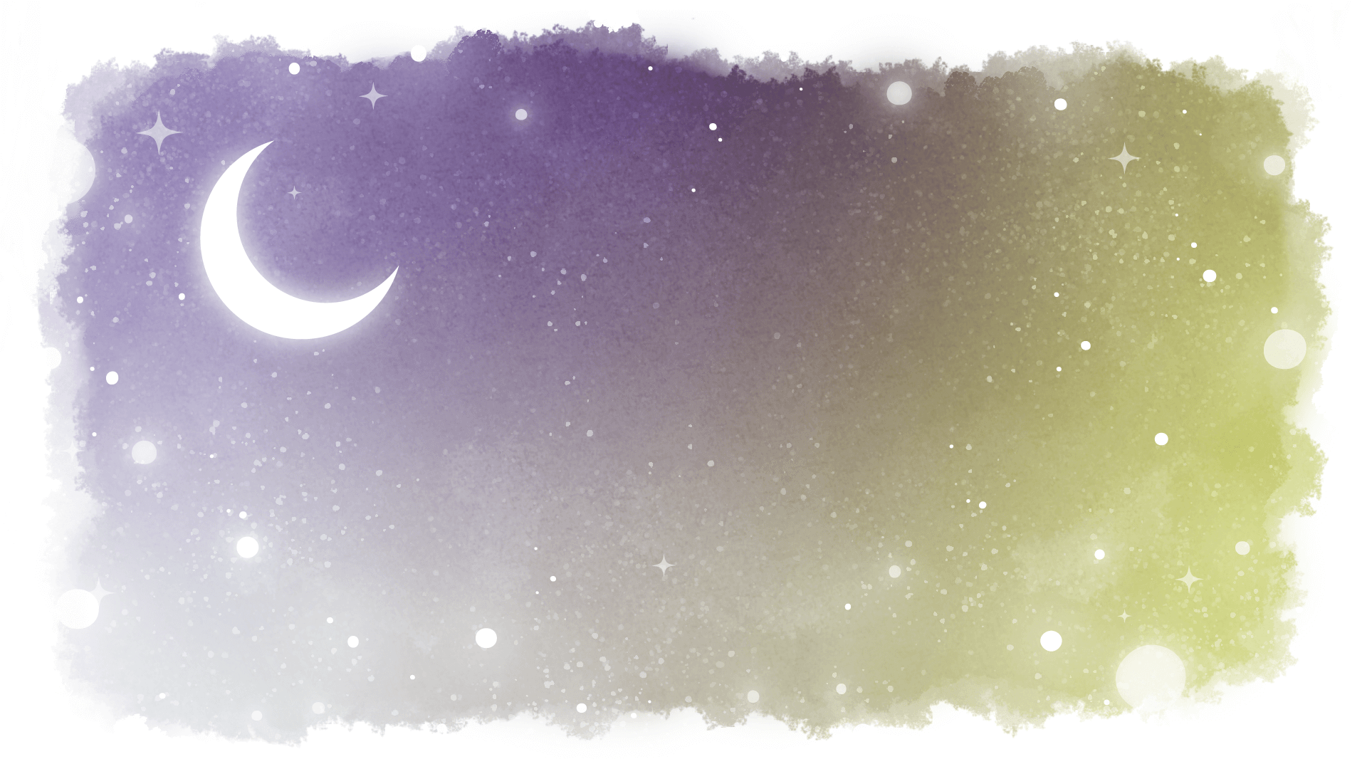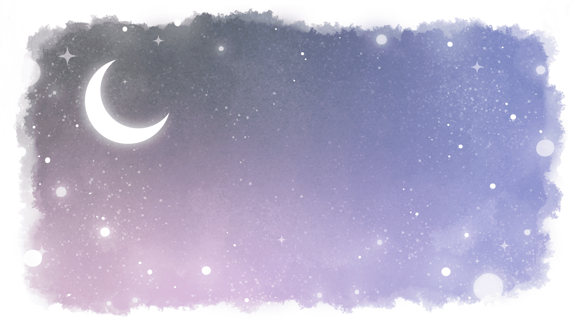 童話、ファンタジー、物語な雰囲気の月が浮かぶ夜空の背景素材です。水彩風フレーム。