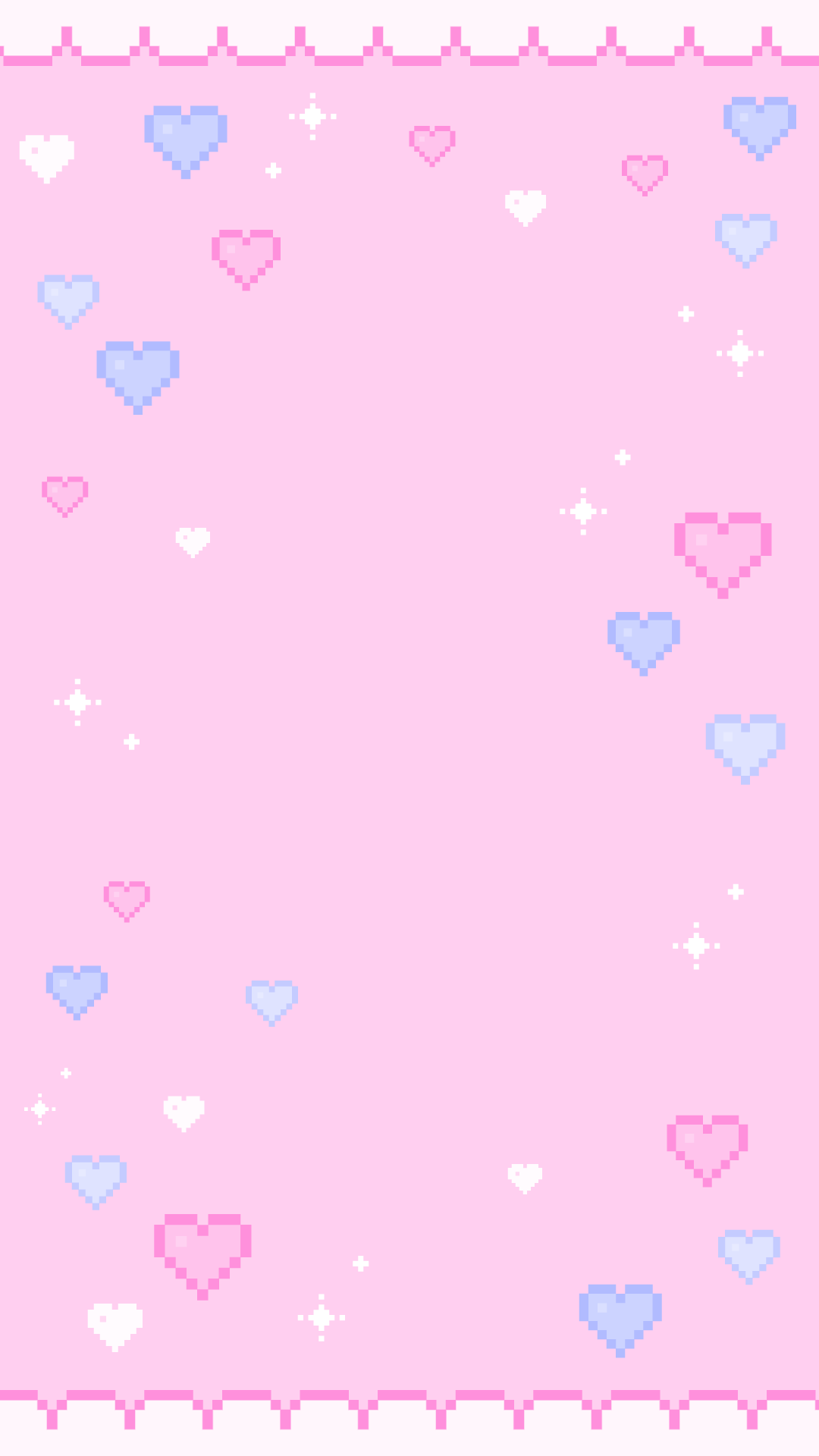 ドット風なハートとキラキラがかわいい背景素材です。縦バージョン。