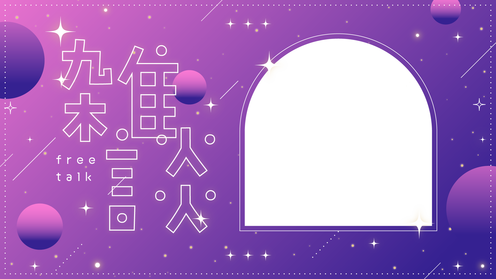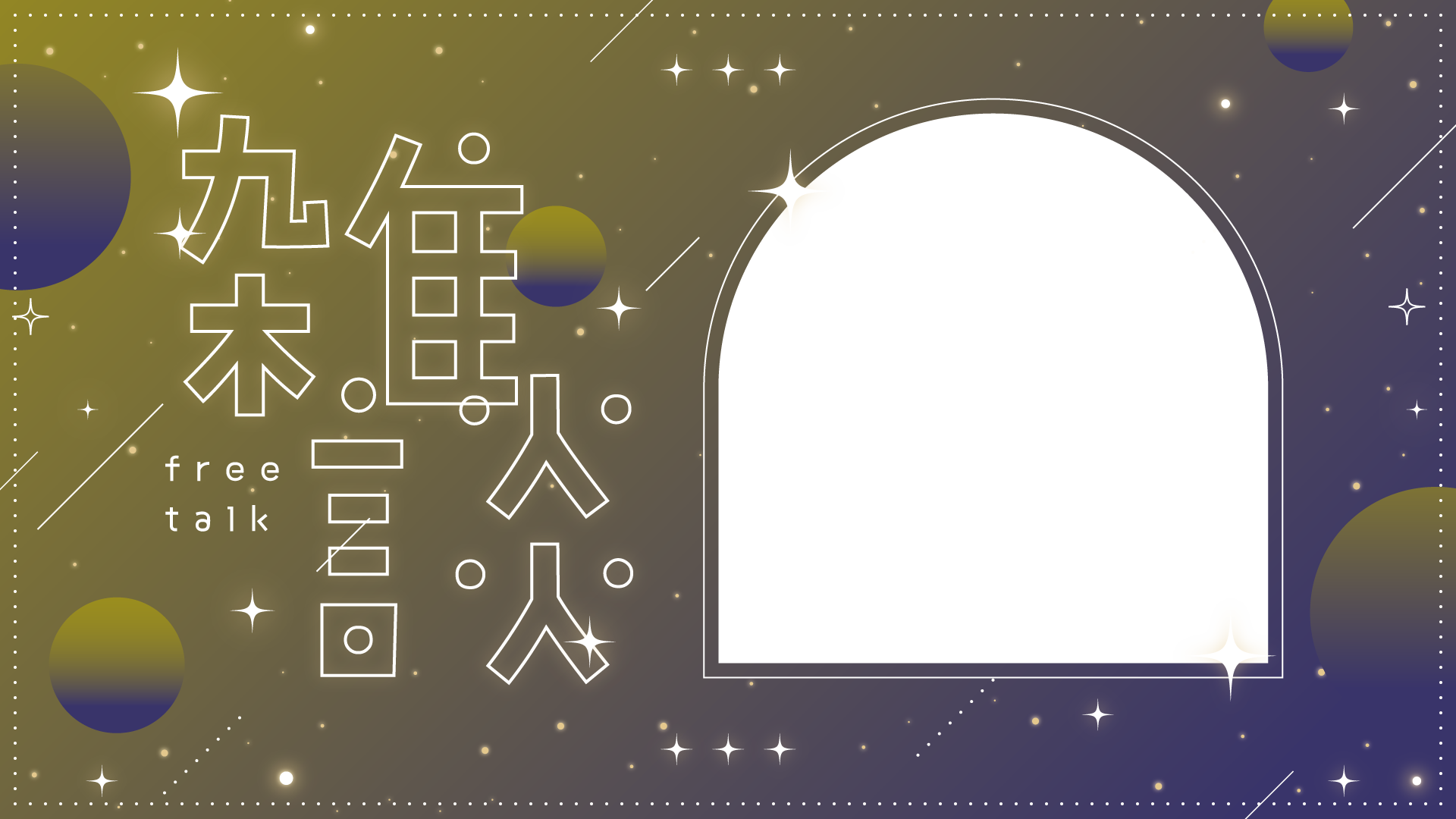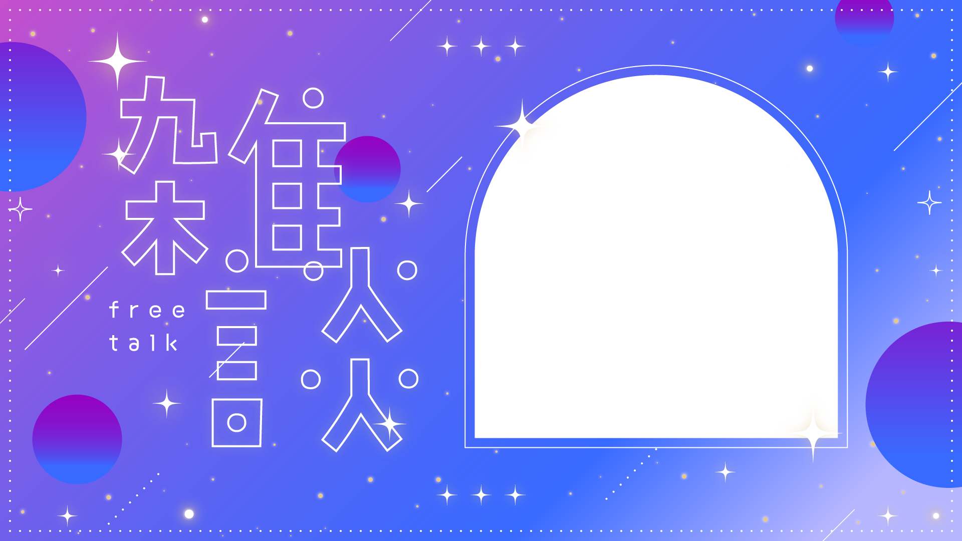 ↑重ねて使えます キラキラな雑談のサムネイル素材です。夜、光、おやすみ、星空、夜空など。フレームパーツを背景パーツに重ねて使えます。右側に立ち絵やイラストを入...