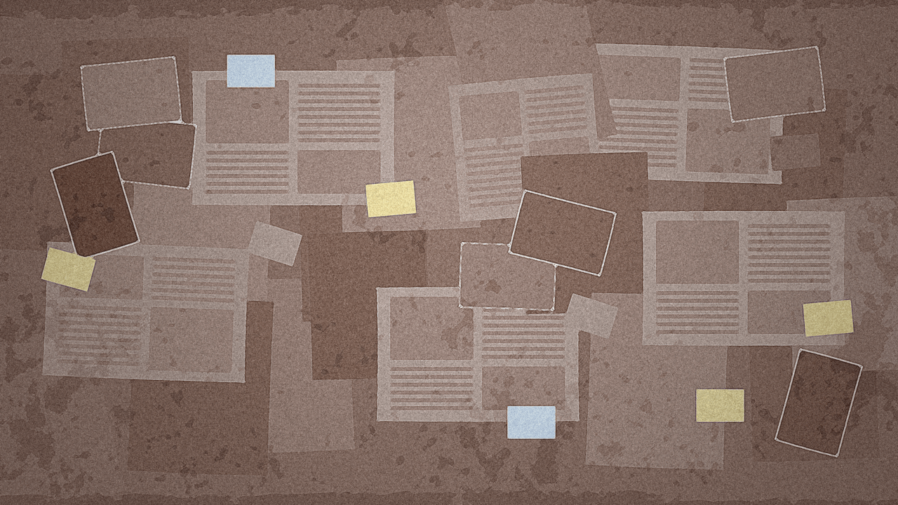 新聞紙と虫眼鏡なフレーム背景素材です。中央に文字やタイトルを入れて使えます。ブログアイキャッチやサムネイルに便利。探偵、ミステリー、クイズ、謎解き、謎、英国...