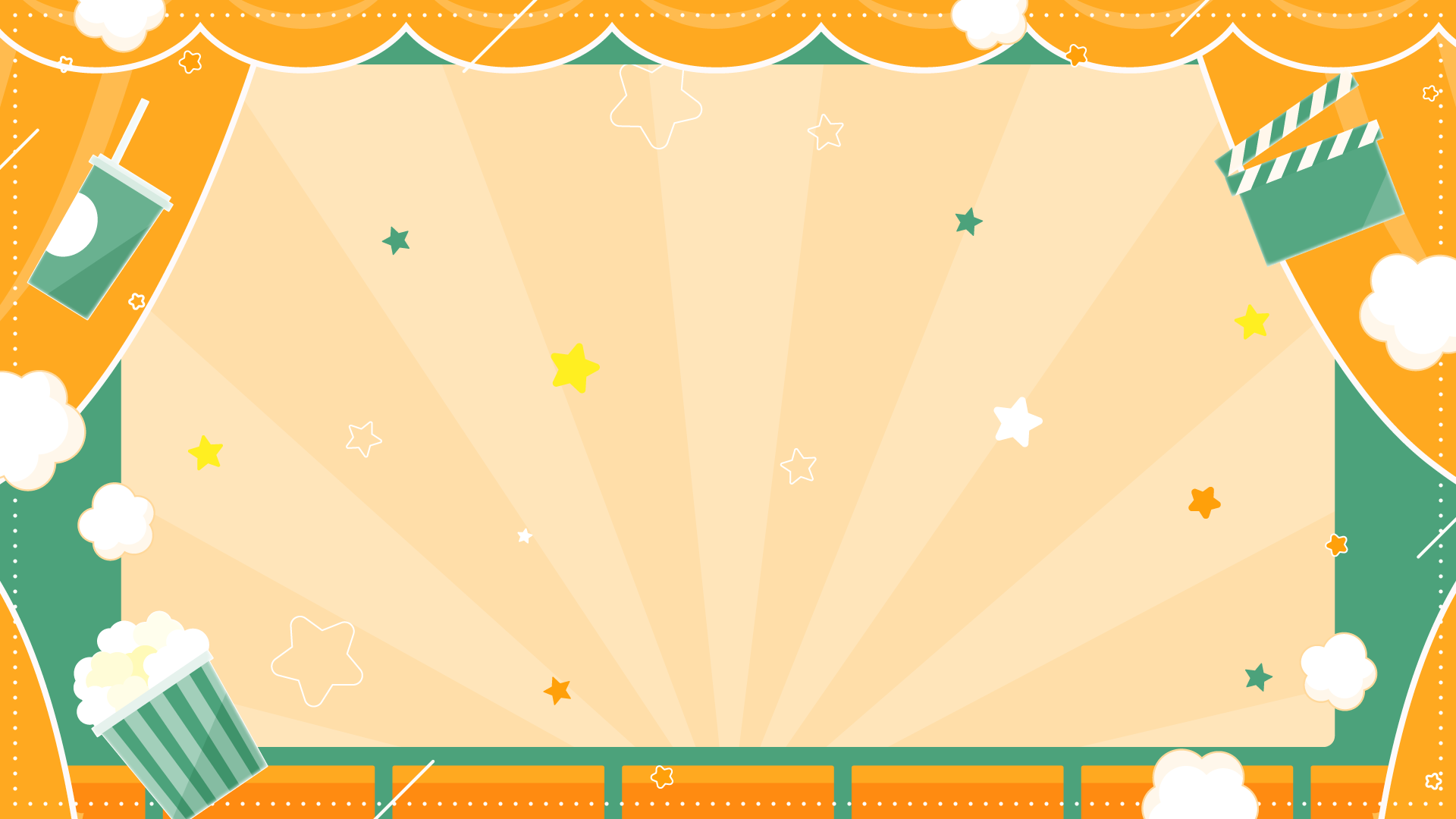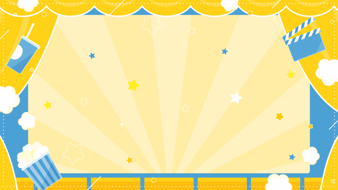 映画館なイメージの背景フリー素材です。ポップコーンやドリンクなど賑やかな雰囲気。中央に文字や文章を入れて掲示物やパワポ、ブログアイキャッチなどに。映画やアニ...