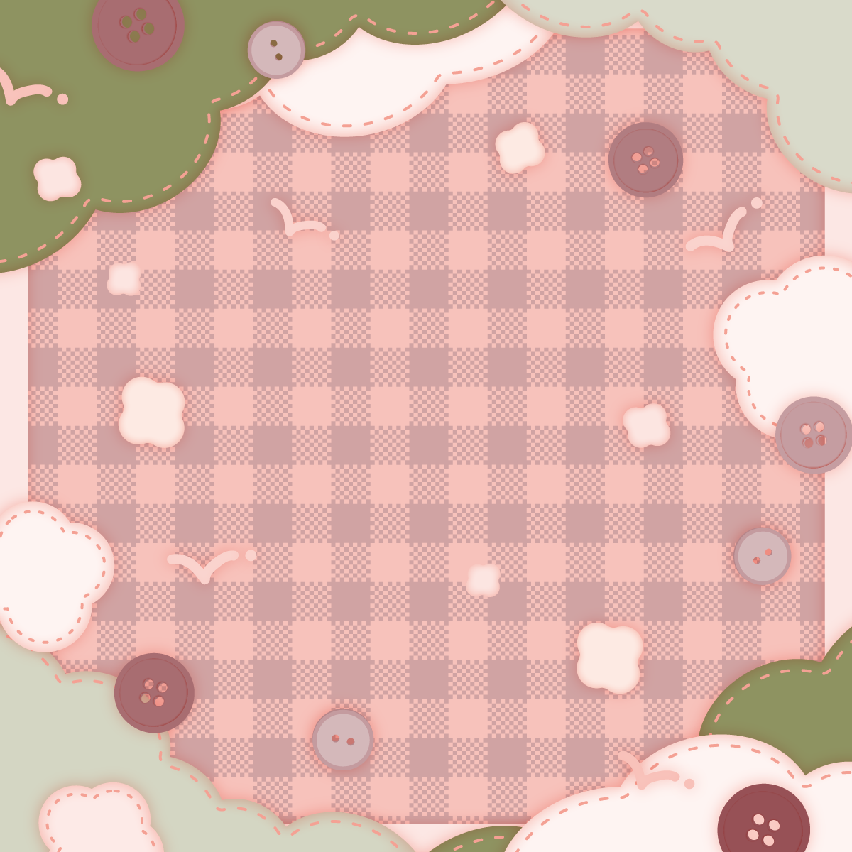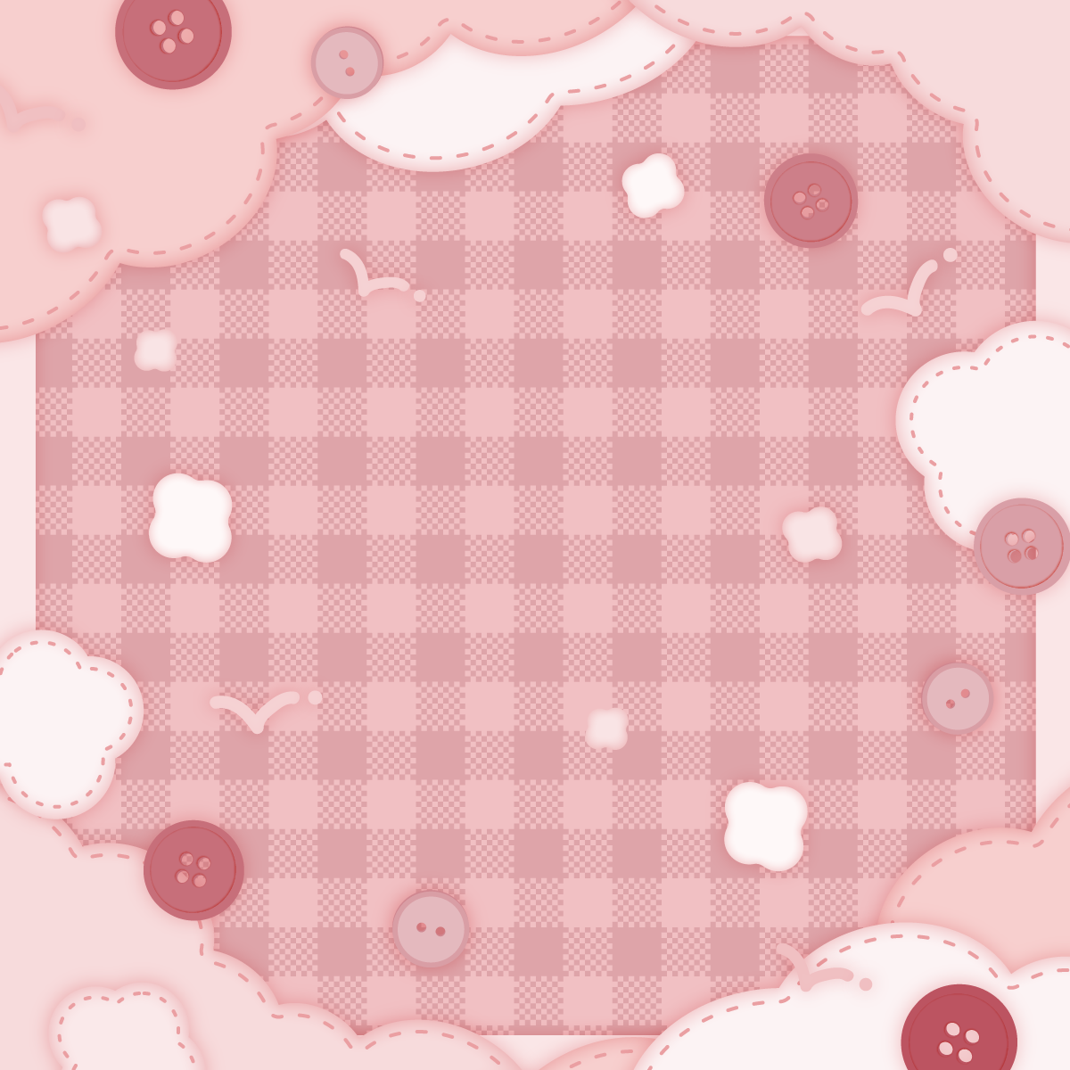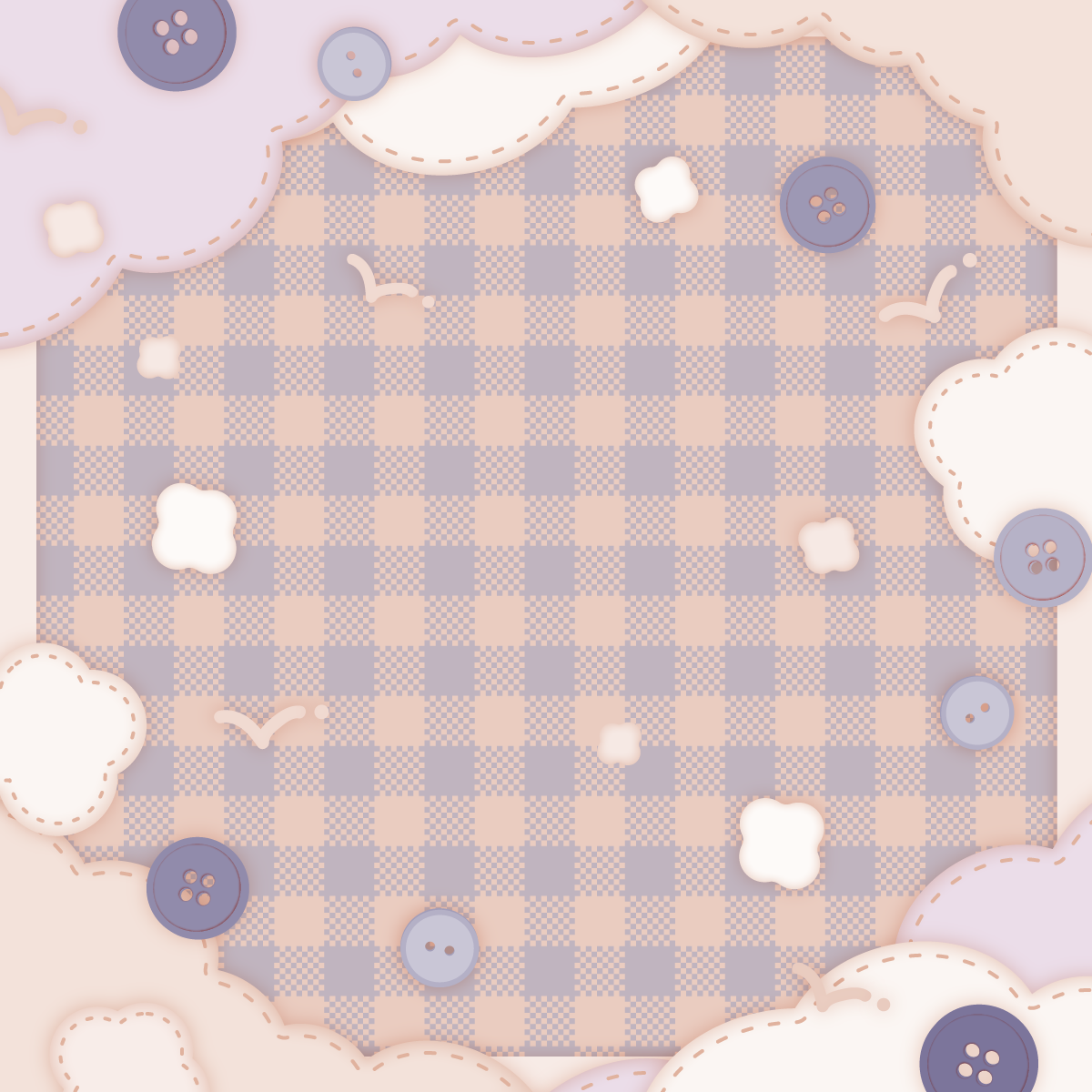 もこもこ雲と糸と布、ボタンな背景素材です。正方形バージョン。