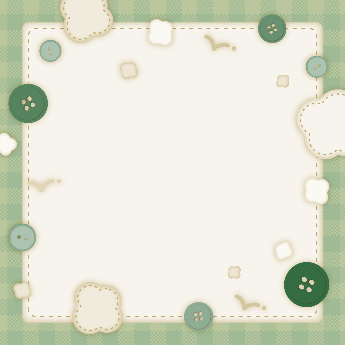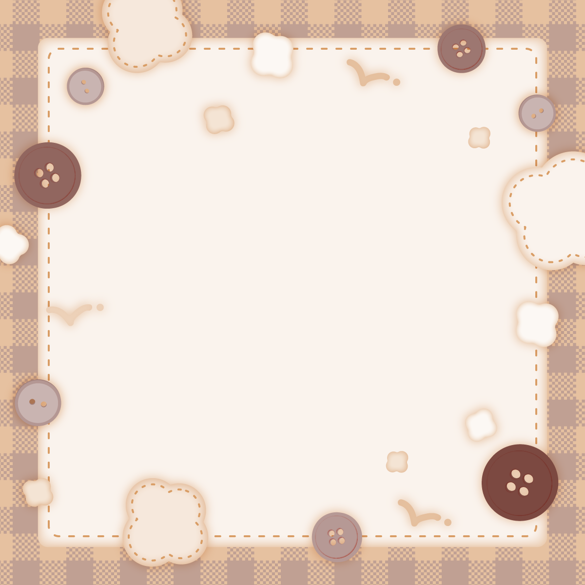 布、糸、ボタンなフレーム背景素材です。正方形、1:1比率。