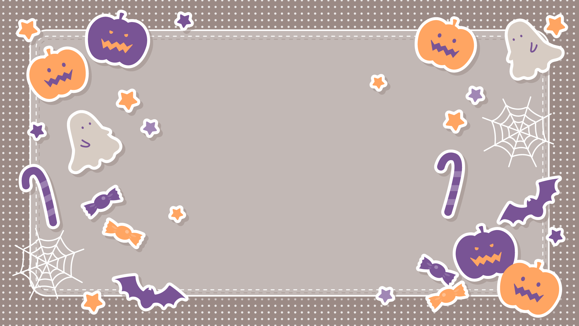 ハロウィンなかわいい背景デザイン素材です。サムネイルにそのまま使いやすい、中央が空いたデザイン。文字やイラストを入れてご使用いただけます。秋・ハロウィンの背...