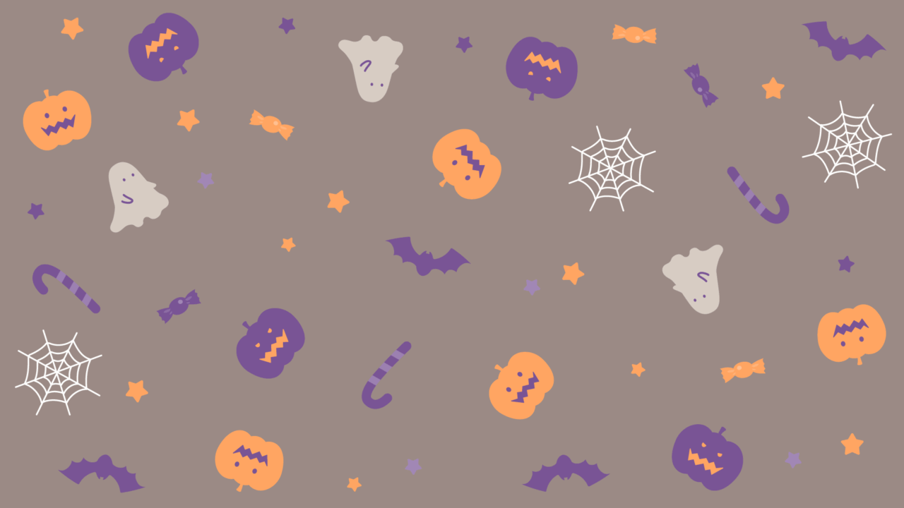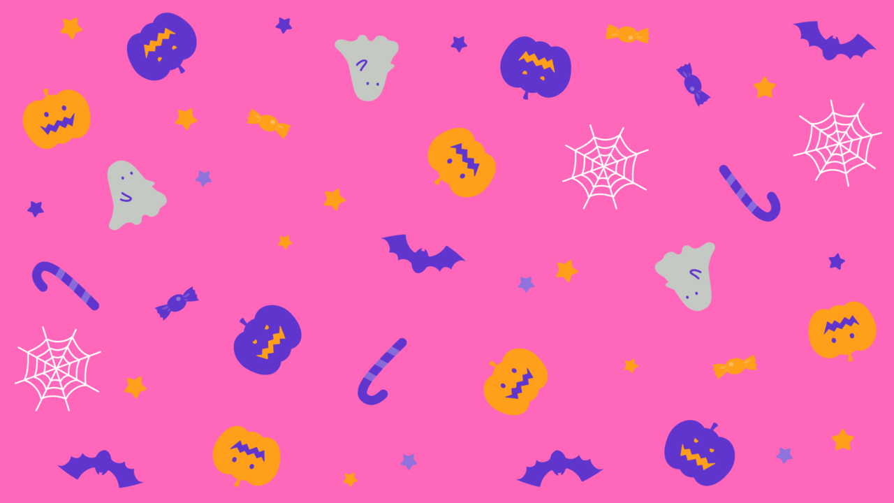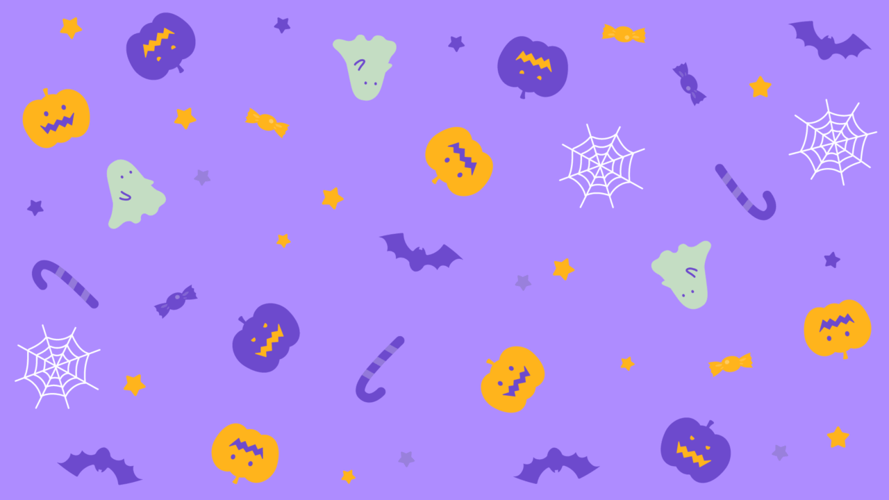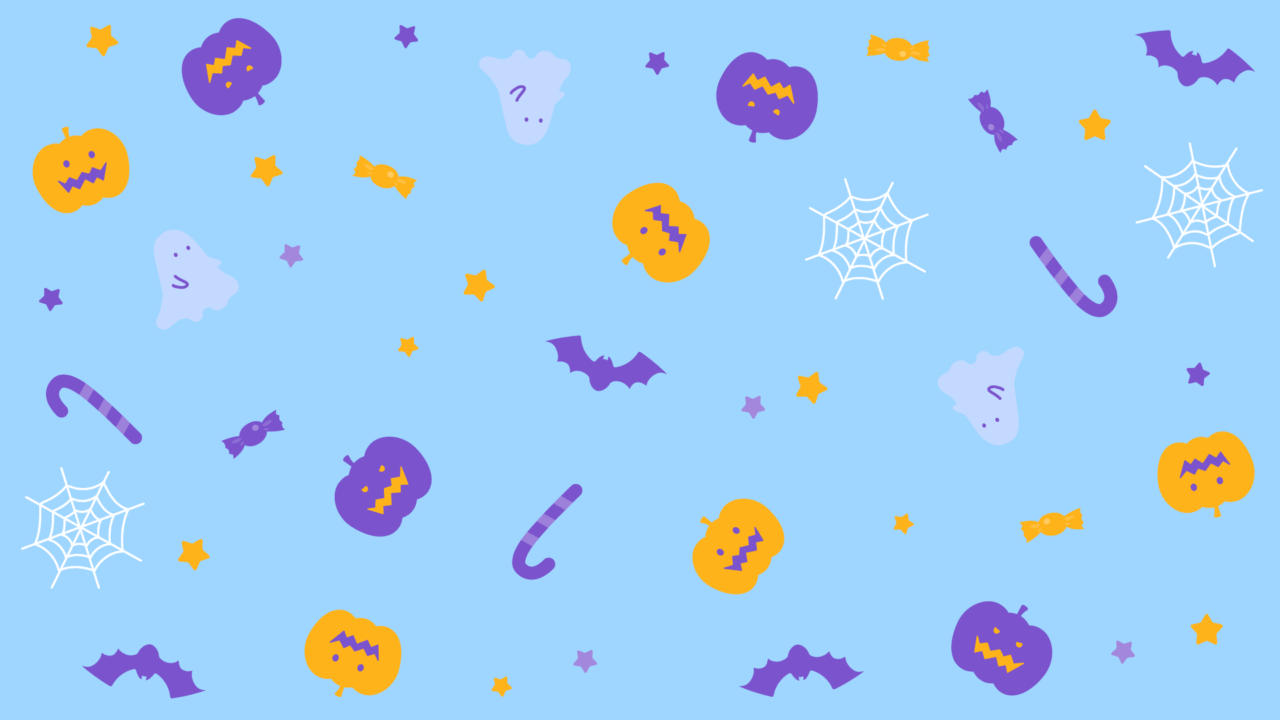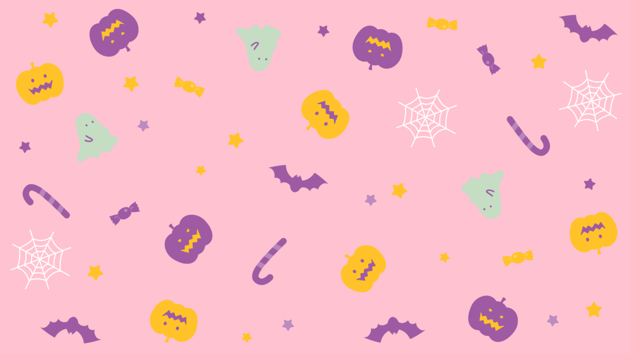パステル・ポップな明るめの色使いのハロウィン柄素材です。カボチャ・ジャックオランタン・おばけ・コウモリ・キャンディのイラスト。