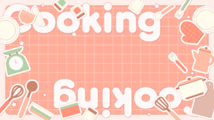 料理、クッキング、調理、台所なテーマのデザイン背景素材です。鍋、はかり、おたま、お皿、やかんやミトンなど。お料理配信や食べ物、食事テーマの配信やイラストの背...