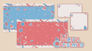 クリスマスに使える配信画面・サムネイルパーツセットです。クリスマスツリー、プレゼント、サンタ帽子、リボン、ジンジャークッキーなどが散りばめられています。各種2...