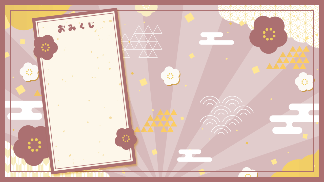 お正月、新年の配信や企画に使えるおみくじ素材です。順番の入れ替えや加工ご自由にどうぞ。