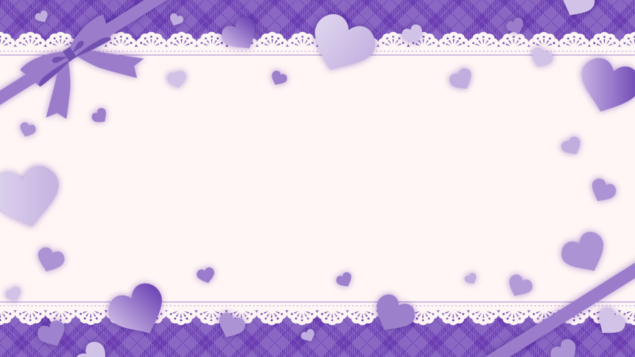 リボンとハート、パールの散らばるかわいい背景素材です。初配信や新衣装、立ち絵公開のサムネイルのほか、アリスやファンタジーなイメージにも。文字や飾りを入れたり...