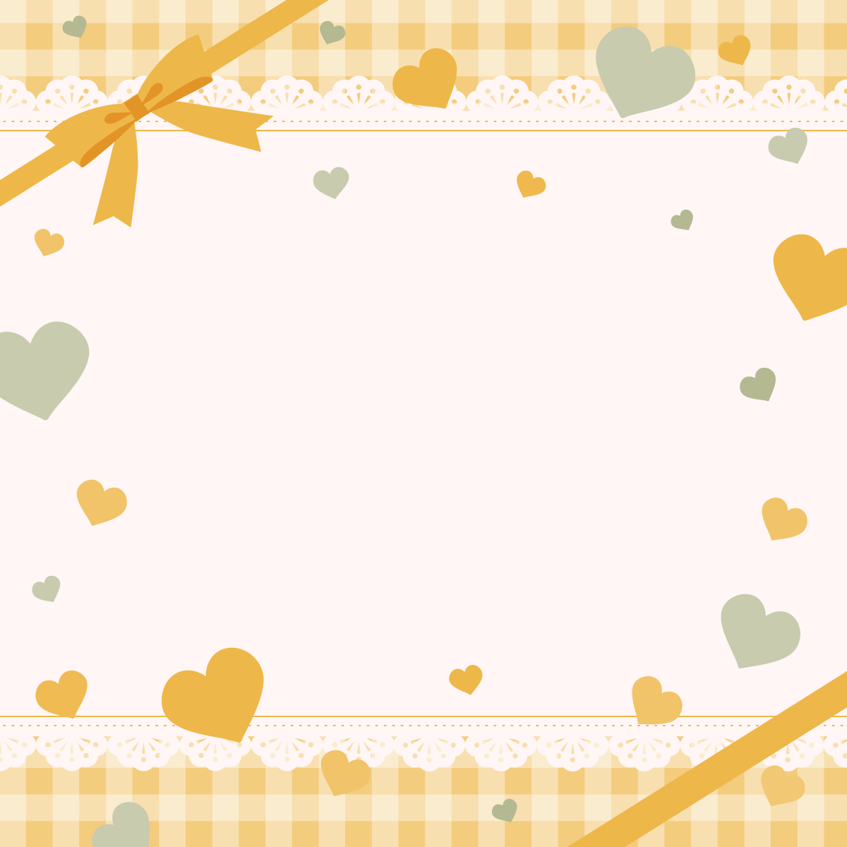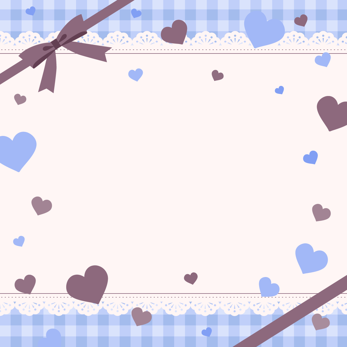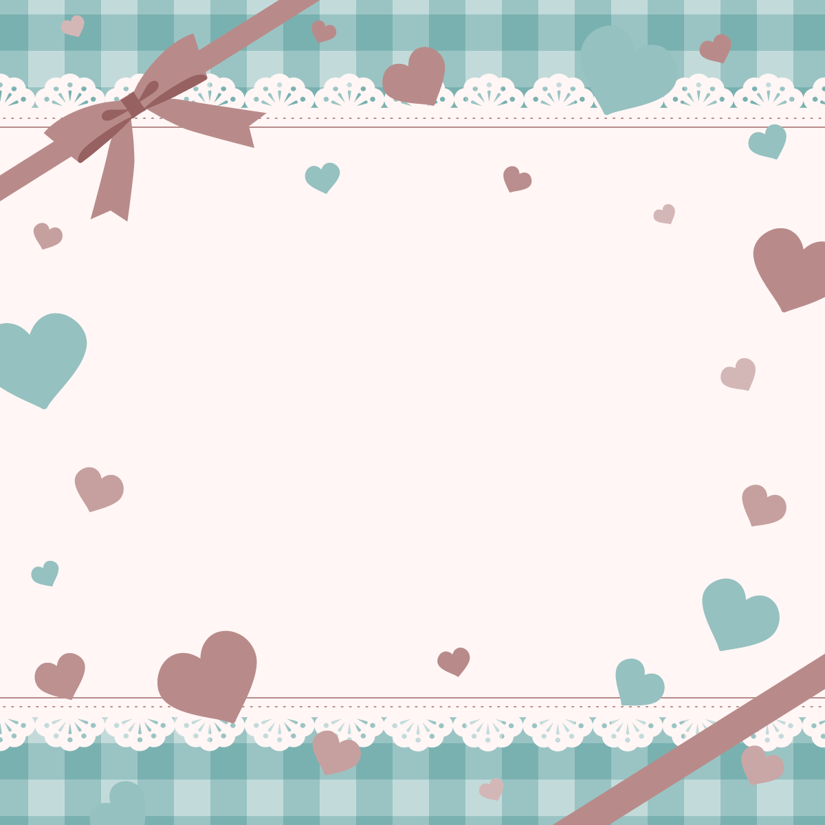 ハートとリボンがかわいい背景素材です。正方形バージョン。アリスっぽいカラーやチョコミントなカラーなども。