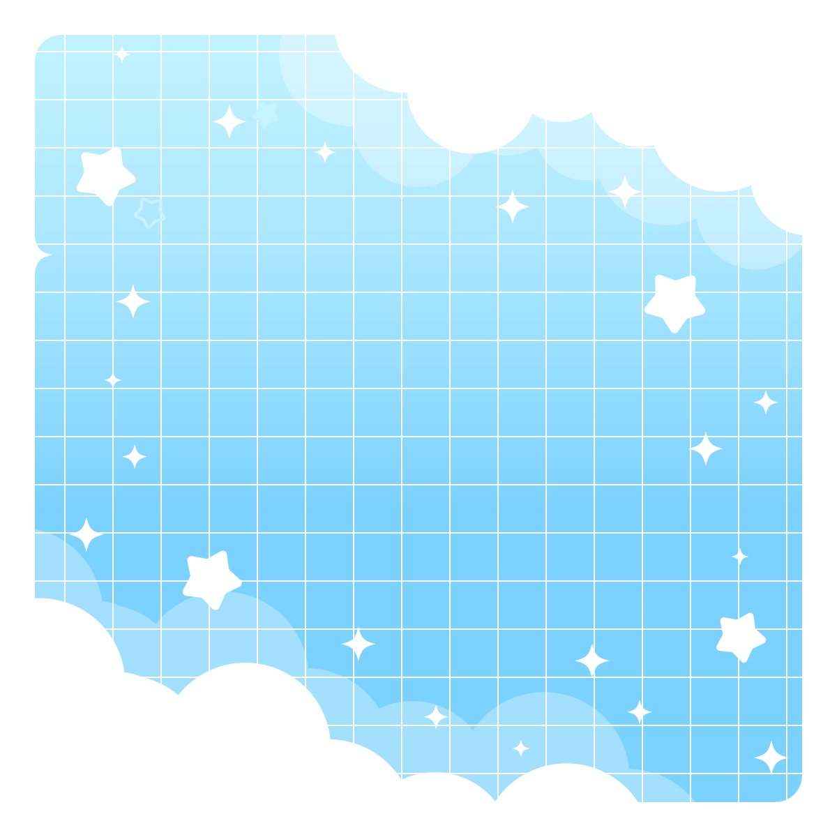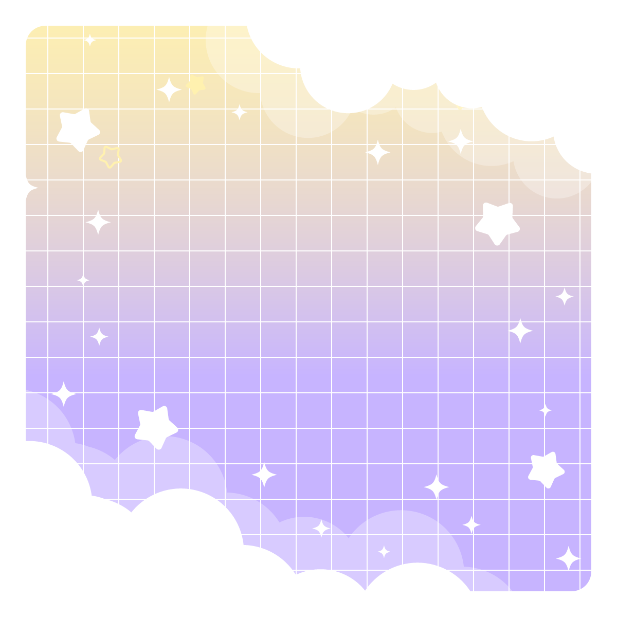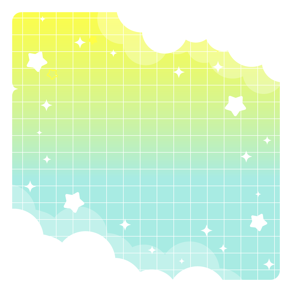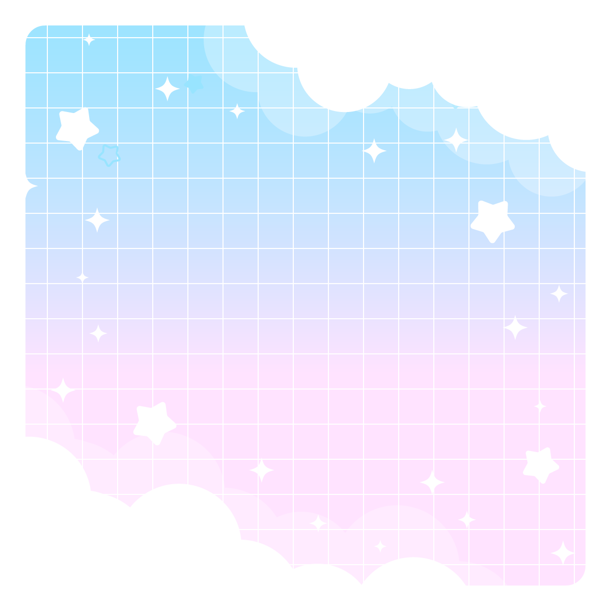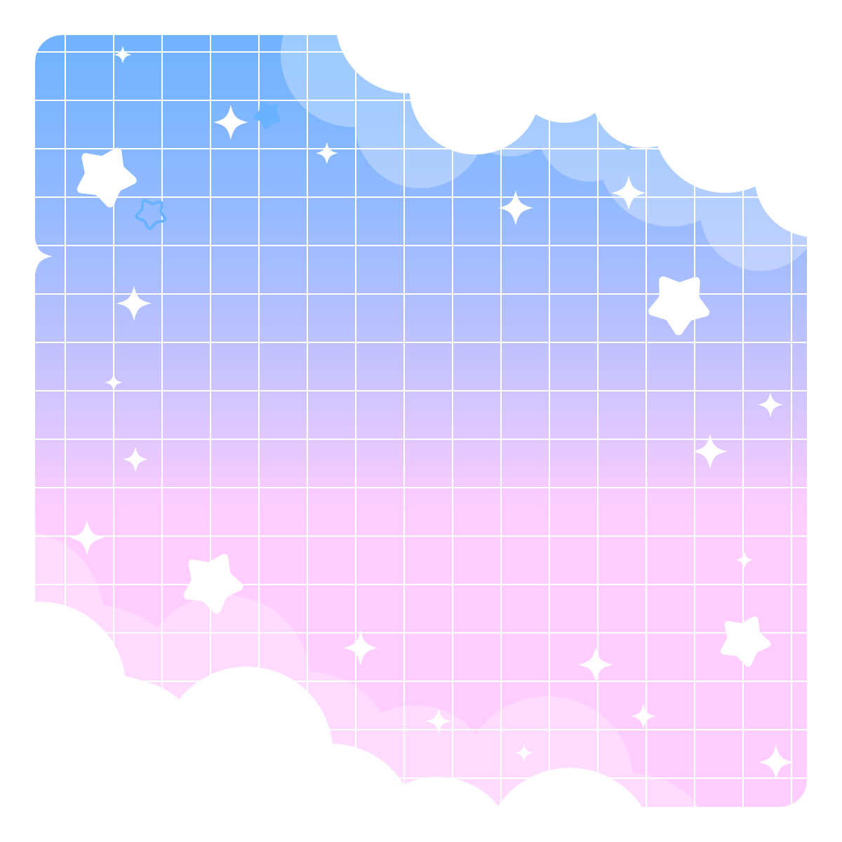星と雲のゆめかわ背景-1:1(8種/フレーム) 2026 3/04 デザイン かわいい きれい 誕生日・記念日 SF・ファンタジー 自然(空や花) 推し活 誕生日 記念日 ゆめかわ キラキラ グラデーション ☆ お気に入り きらきら星と雲がかわいい背景素材です。正方形バージョン。ゆめかわ、星、空、天使、おやすみ、かわいい感じなどいろんな場面で使えそう。左の背景に右のフレームパーツを重ねて使えます。 ☆ お気に入り デザイン かわいい きれい 誕生日・記念日 SF・ファンタジー 自然(空や花) 推し活 誕生日 記念日 ゆめかわ キラキラ グラデーション URLをコピーしました!