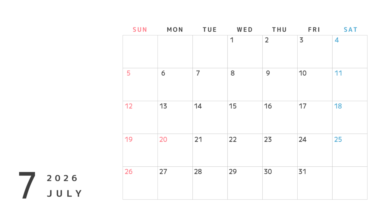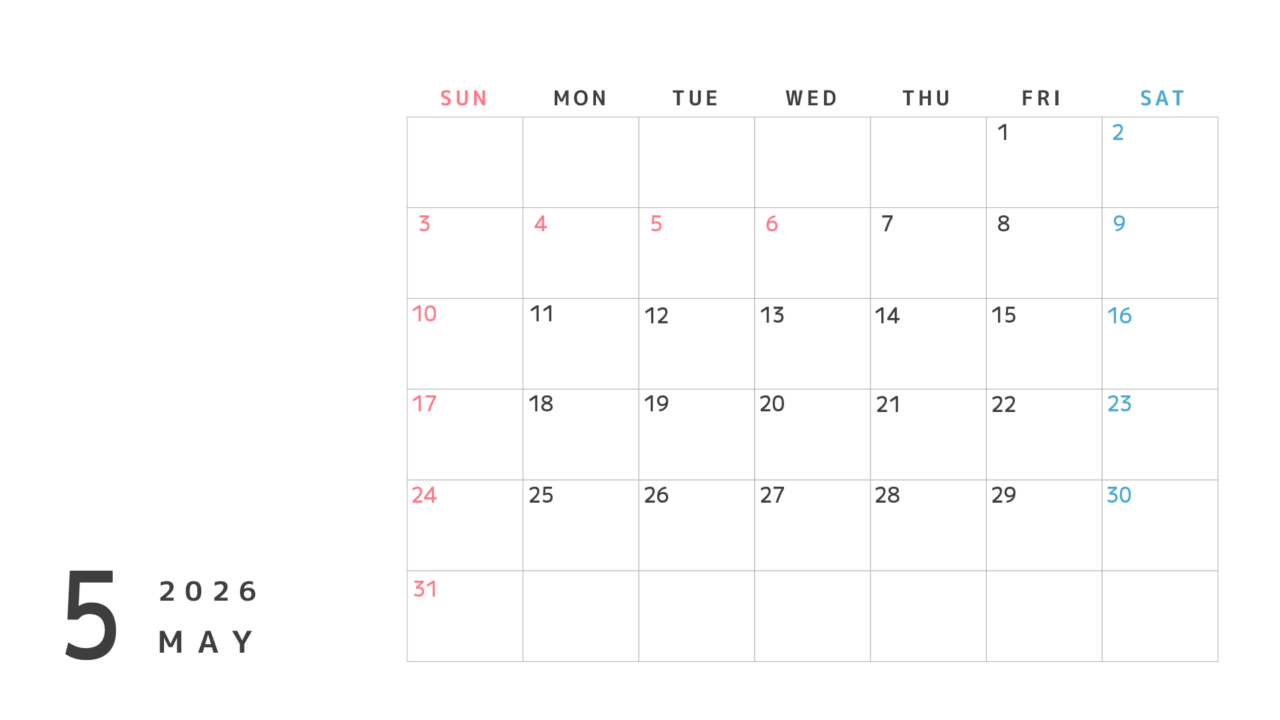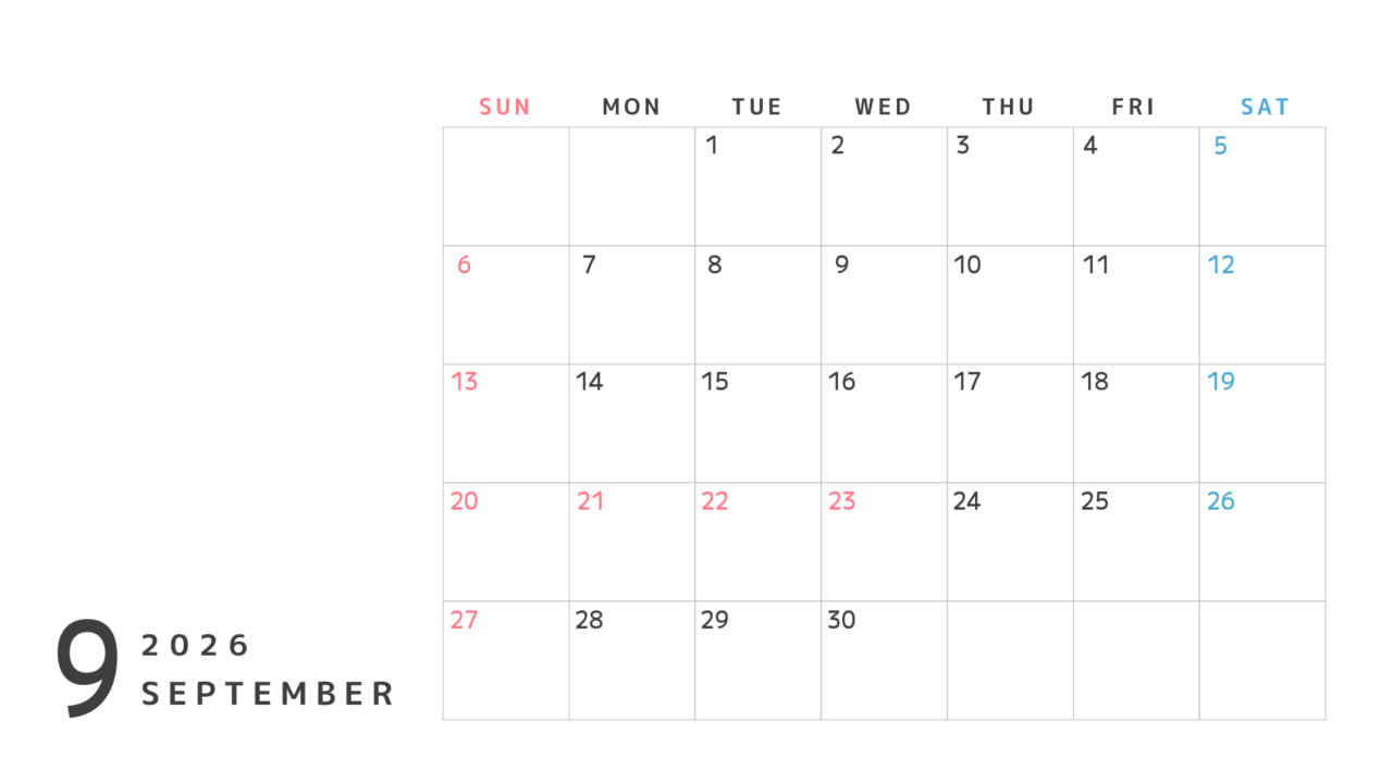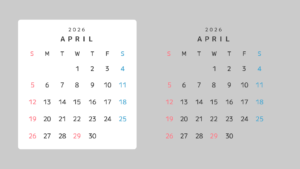 2026年のカレンダー素材4(4月〜27年3月)
