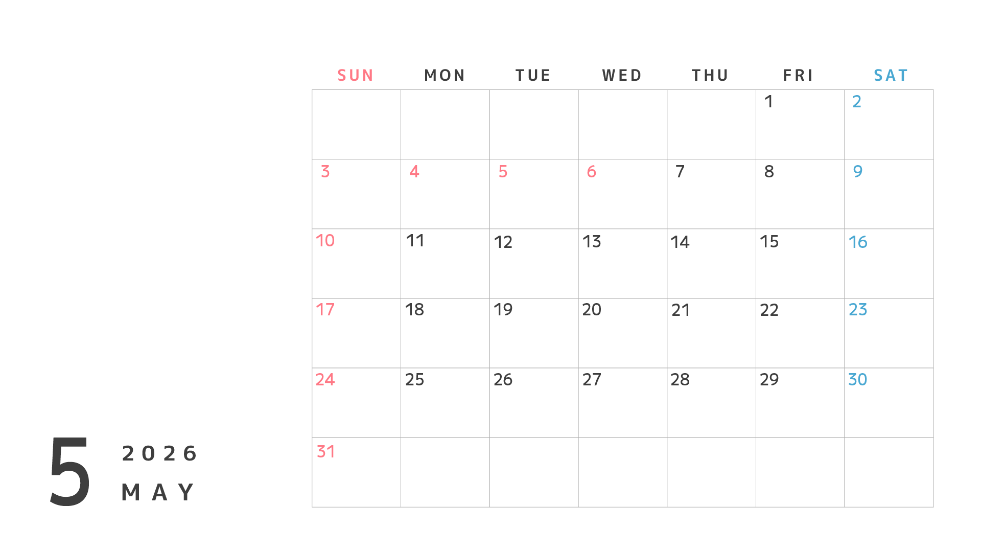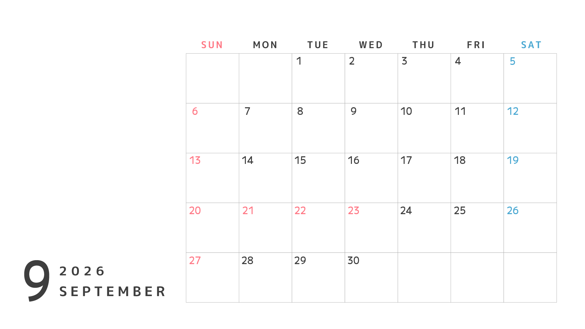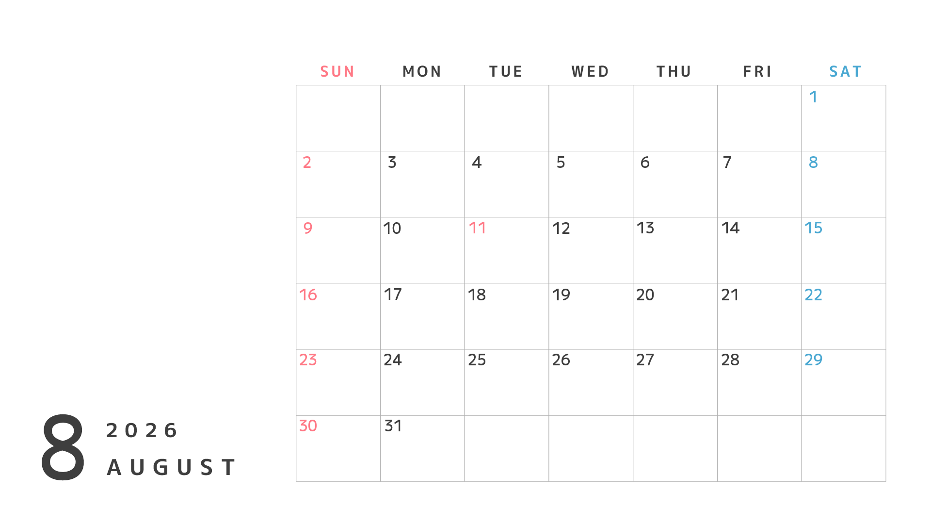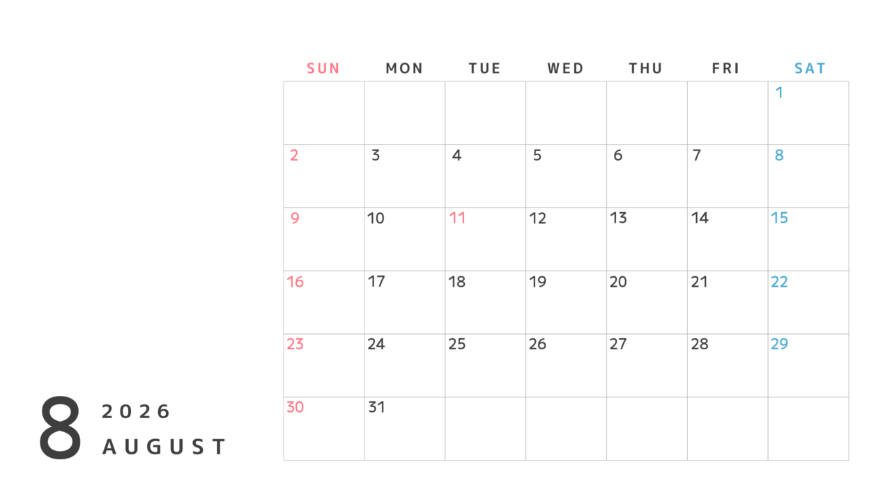 左側が空いているのでイラストなどを入れて月間の活動スケジュール表としても使えそう。