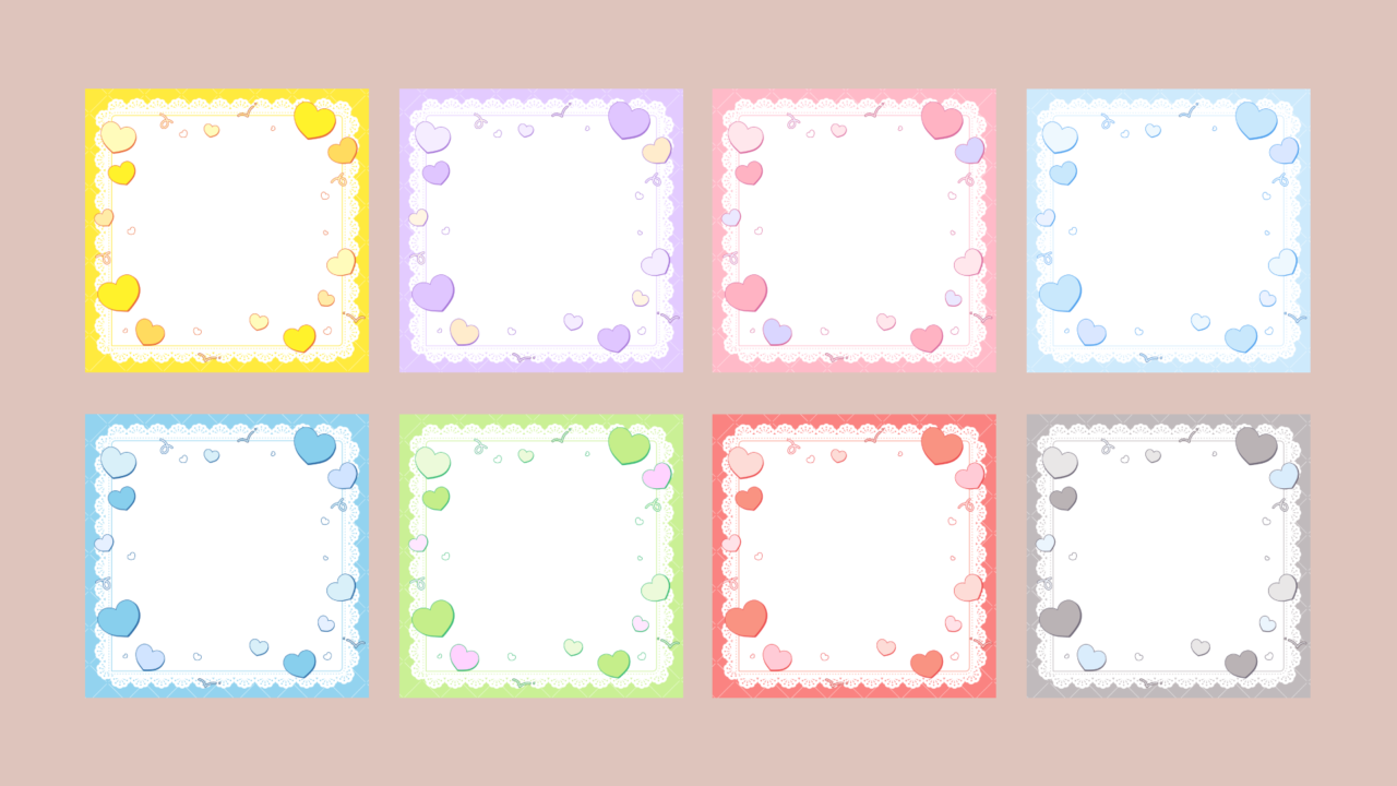 パステルハートとレースの背景-1:1(8種)