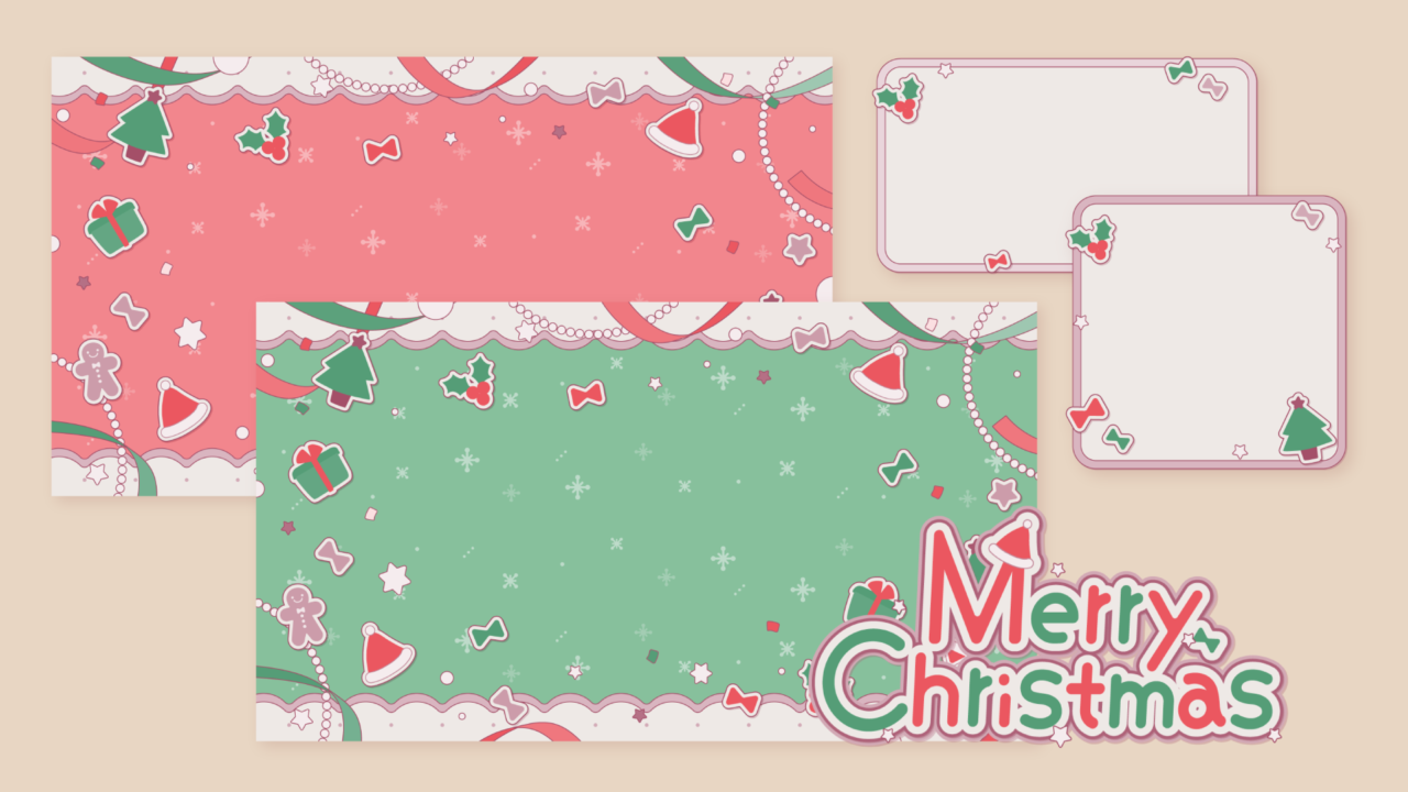 かわいいクリスマスパーツセット-赤緑(5種)